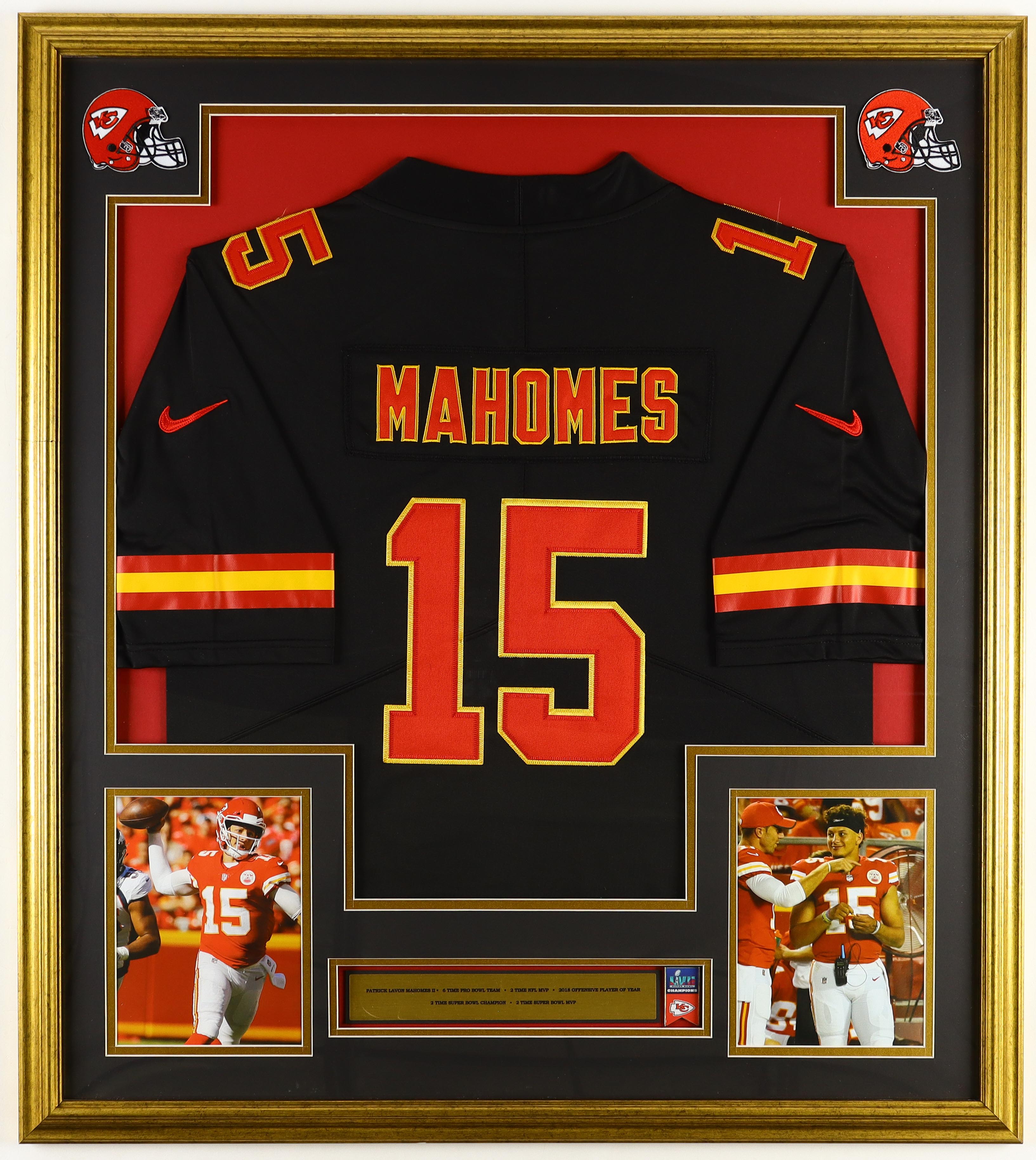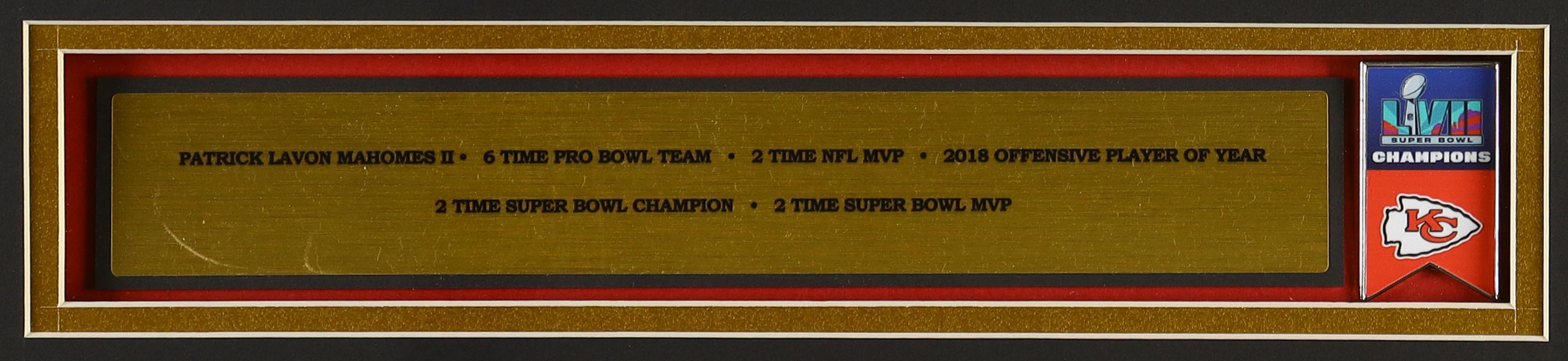 Patrick Mahomes Chiefs Custom Framed Jersey Display with Official Super Bowl LVII Metal Banner & (2) Logo Cloth Patches