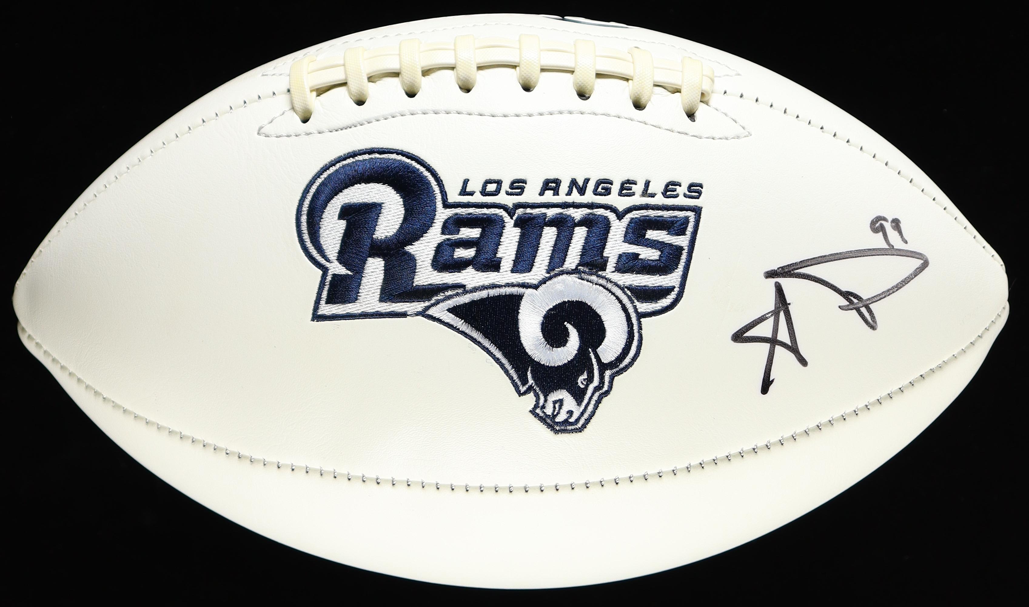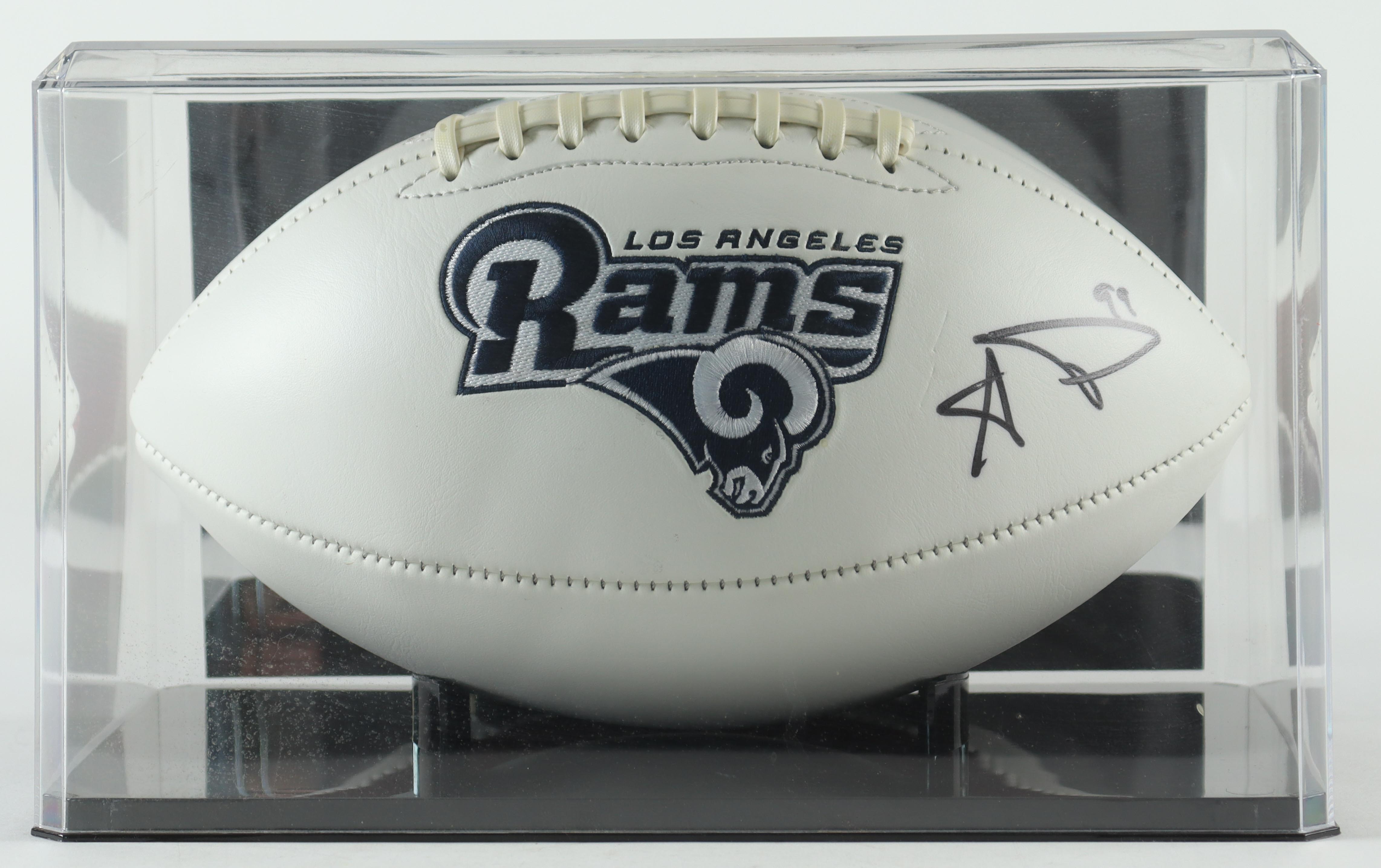 Los Angeles Rams logo football. Hand-signed by Aaron Donald. Includes display case as shown.