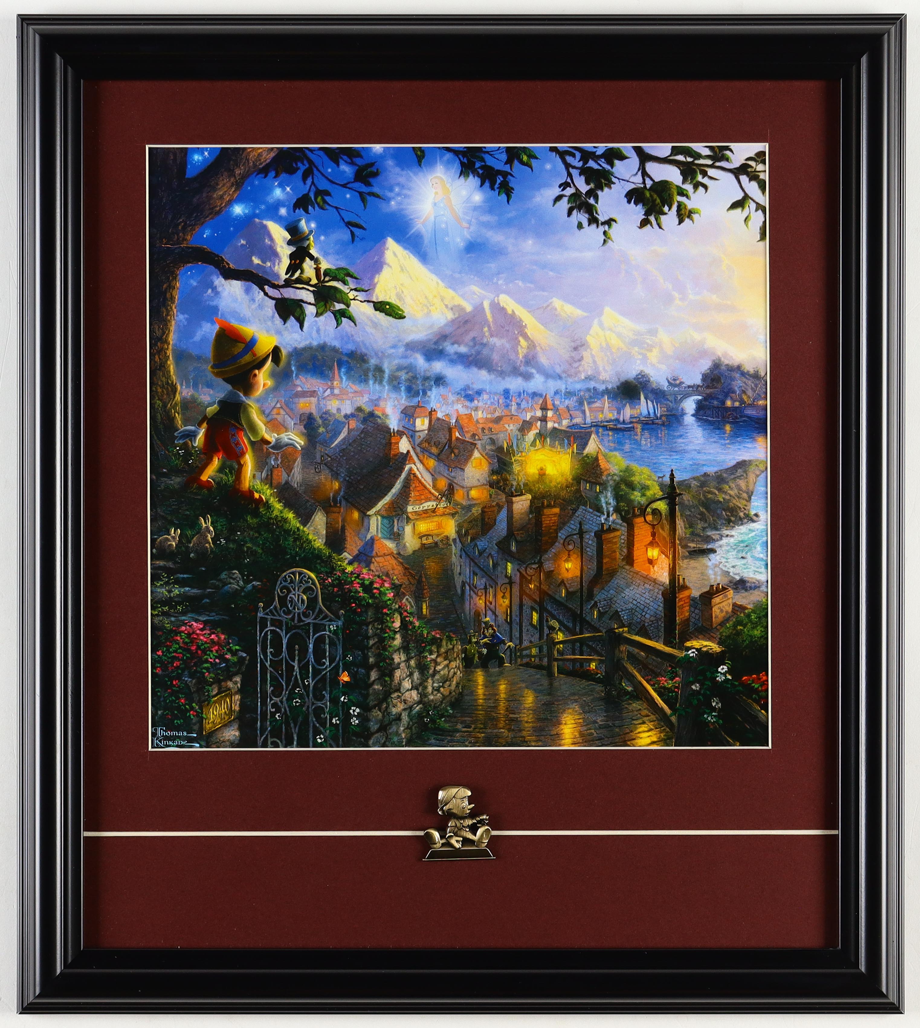 Thomas Kinkade "Pinocchio" Custom Framed Print Display with Pinocchio Pin