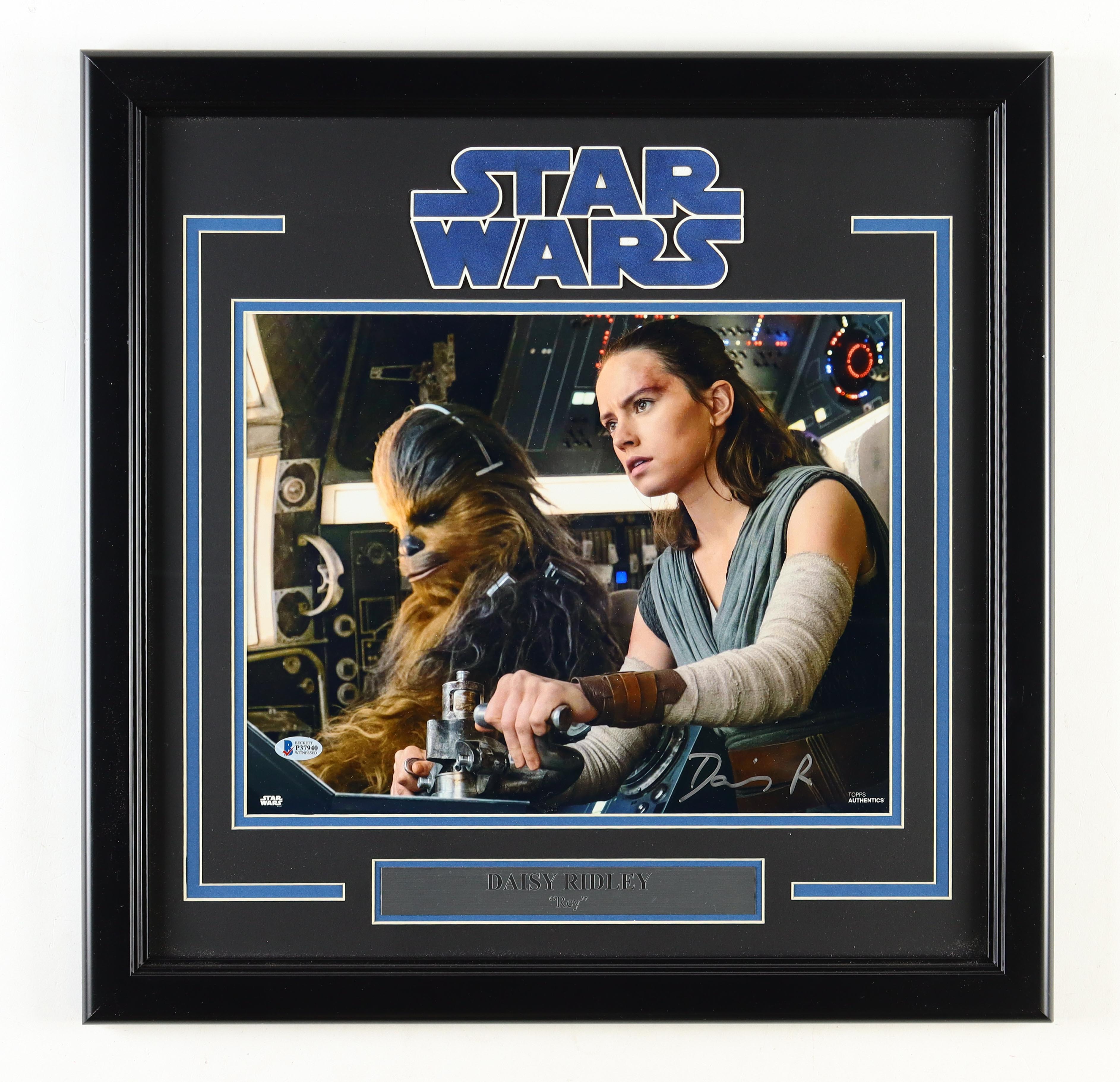 Custom frame measures approximately 20” x 20" in size and features a photo that has been hand-signed by Daisy Ridley (Rey).