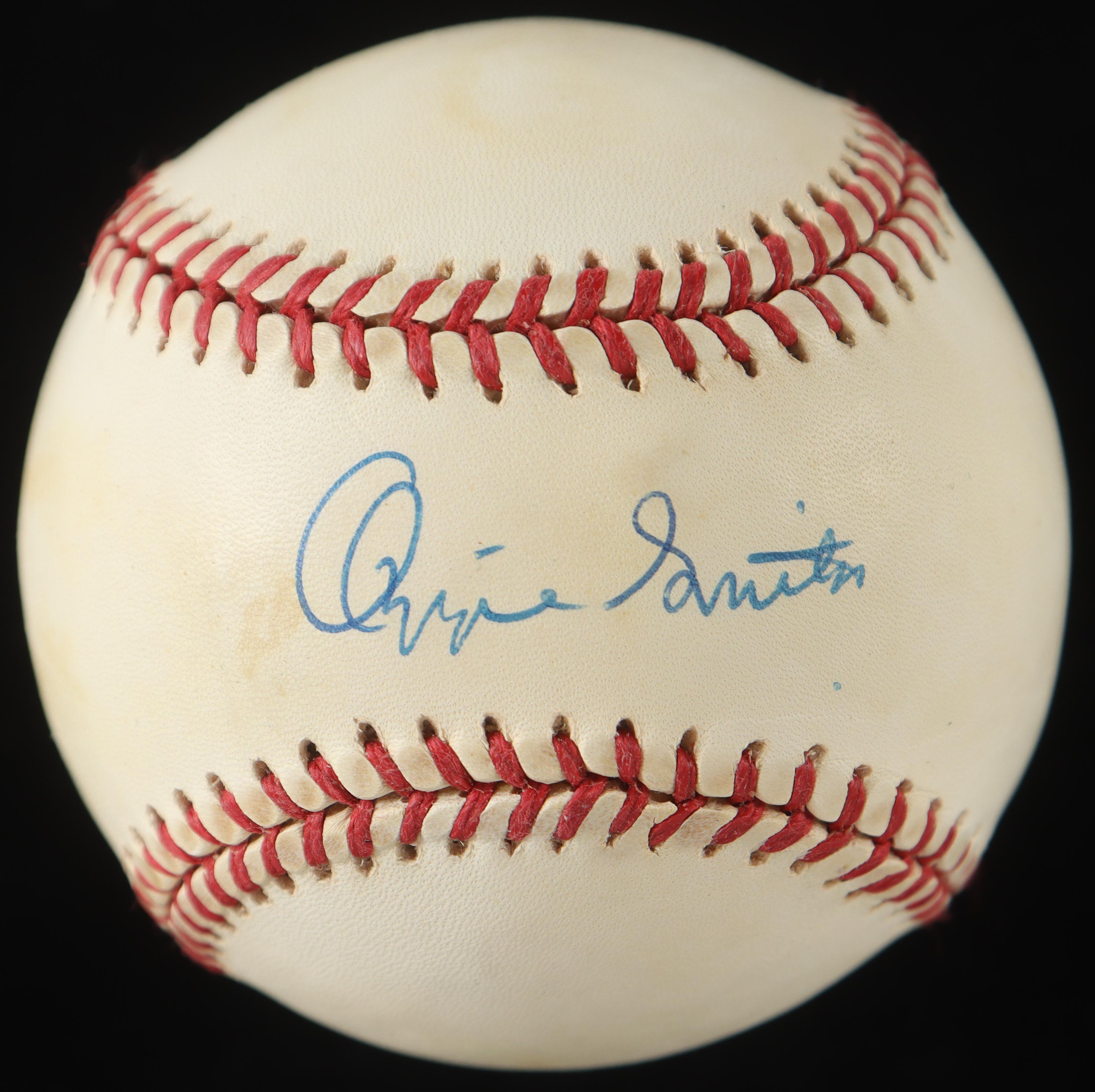 Rawlings Official National League baseball. Hand-signed by Ozzie Smith (St. Louis Cardinals, HOF). Includes display case as shown. Please note, the baseball is naturally toned.