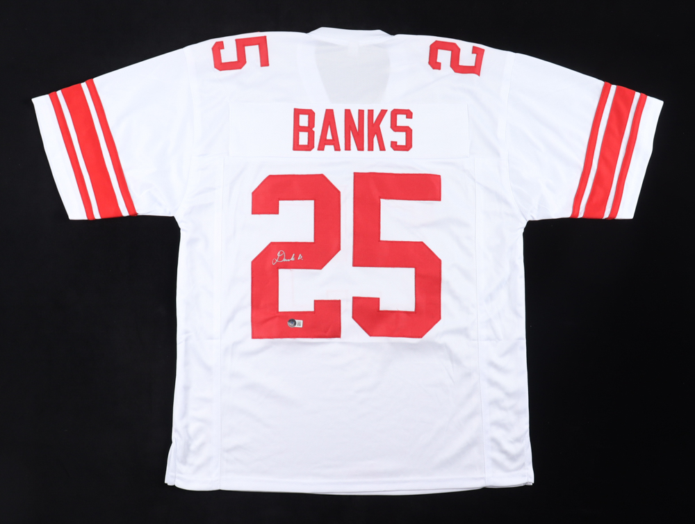 Custom jersey. Everything is sewn on, size XL. Hand-signed by Deonte Banks.