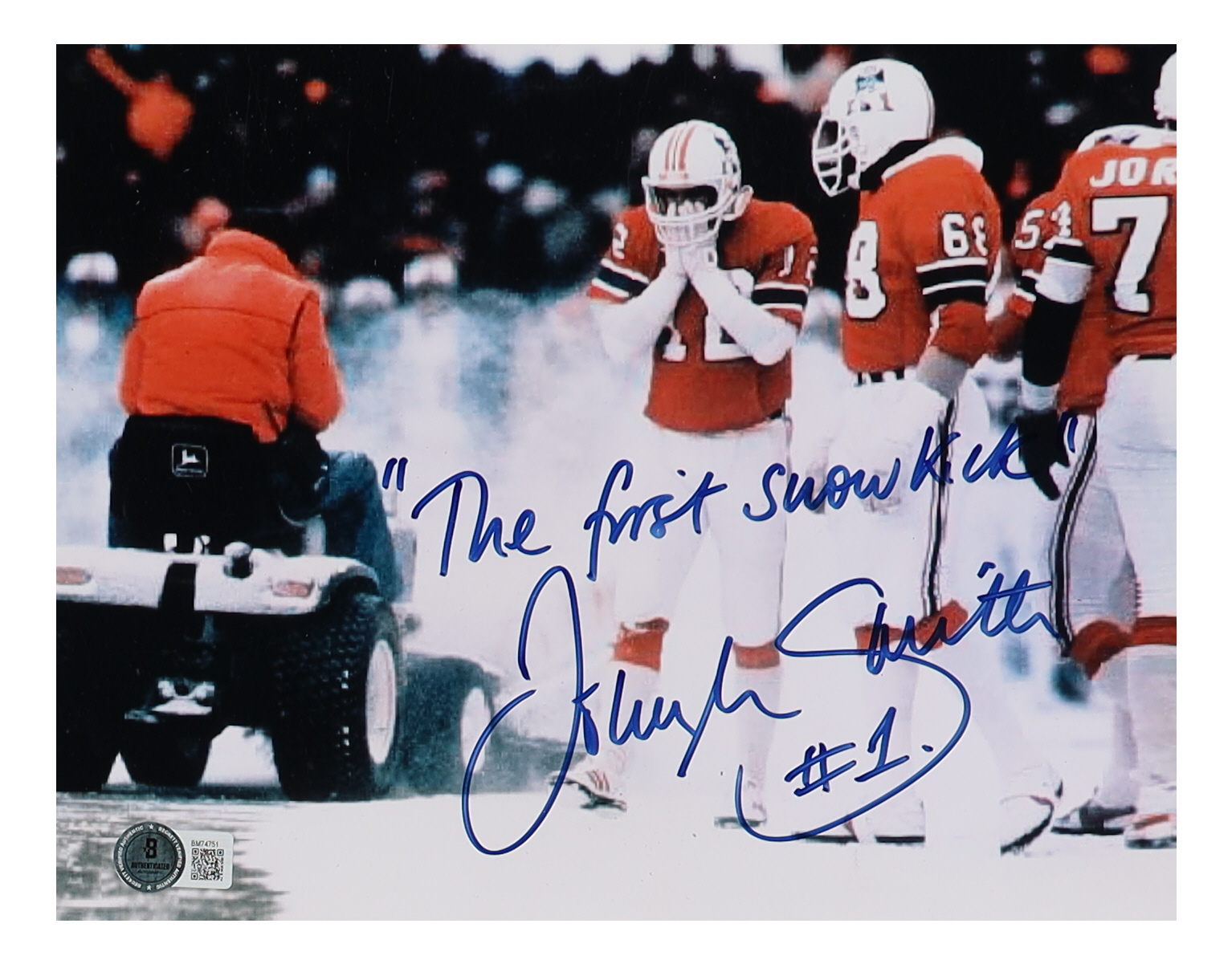 John Smith Signed New England Patriots 8x10 Photo Inscribed "First Snow Kick" (Beckett)