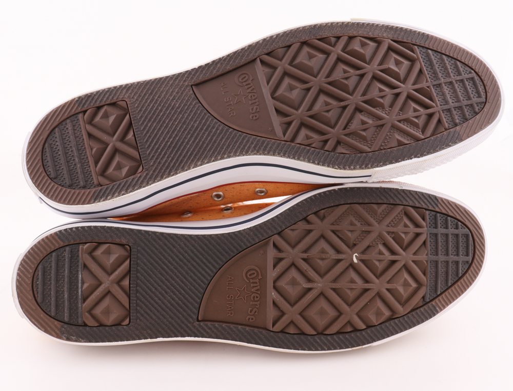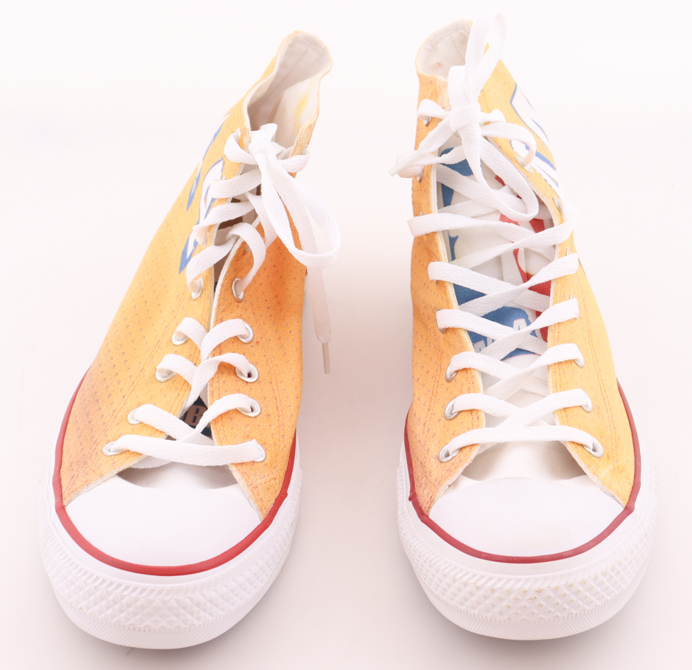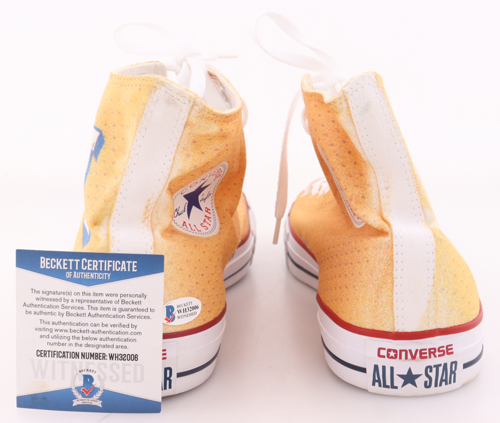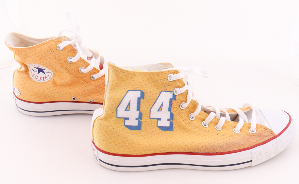 Pair of Converse All Star basketball shoes, size (13). The left shoe has been hand-signed and inscribed by Jerry West (Los Angeles Lakers, HOF).