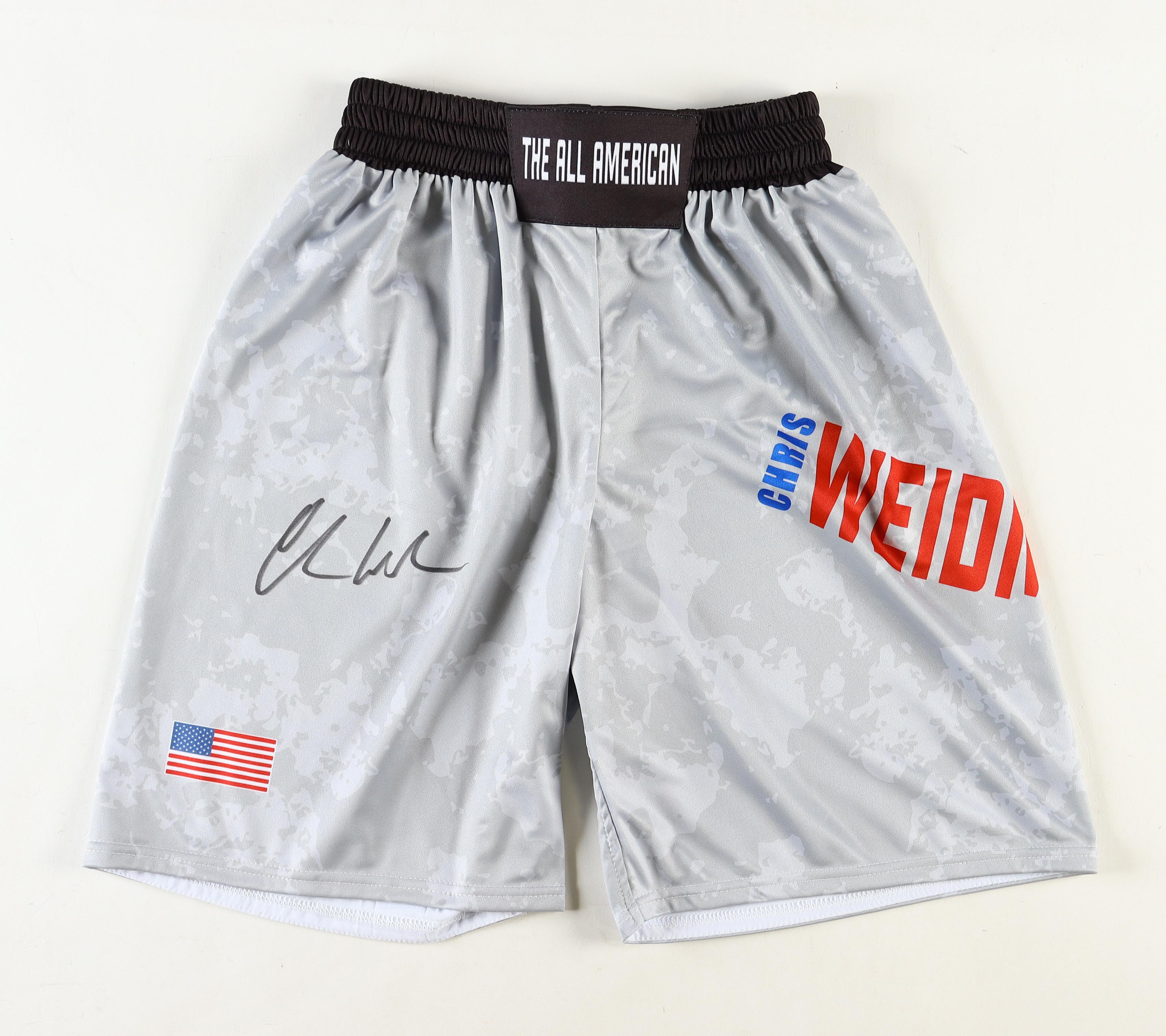 Custom MMA fight shorts. Hand-signed by Chris Weidman (UFC).