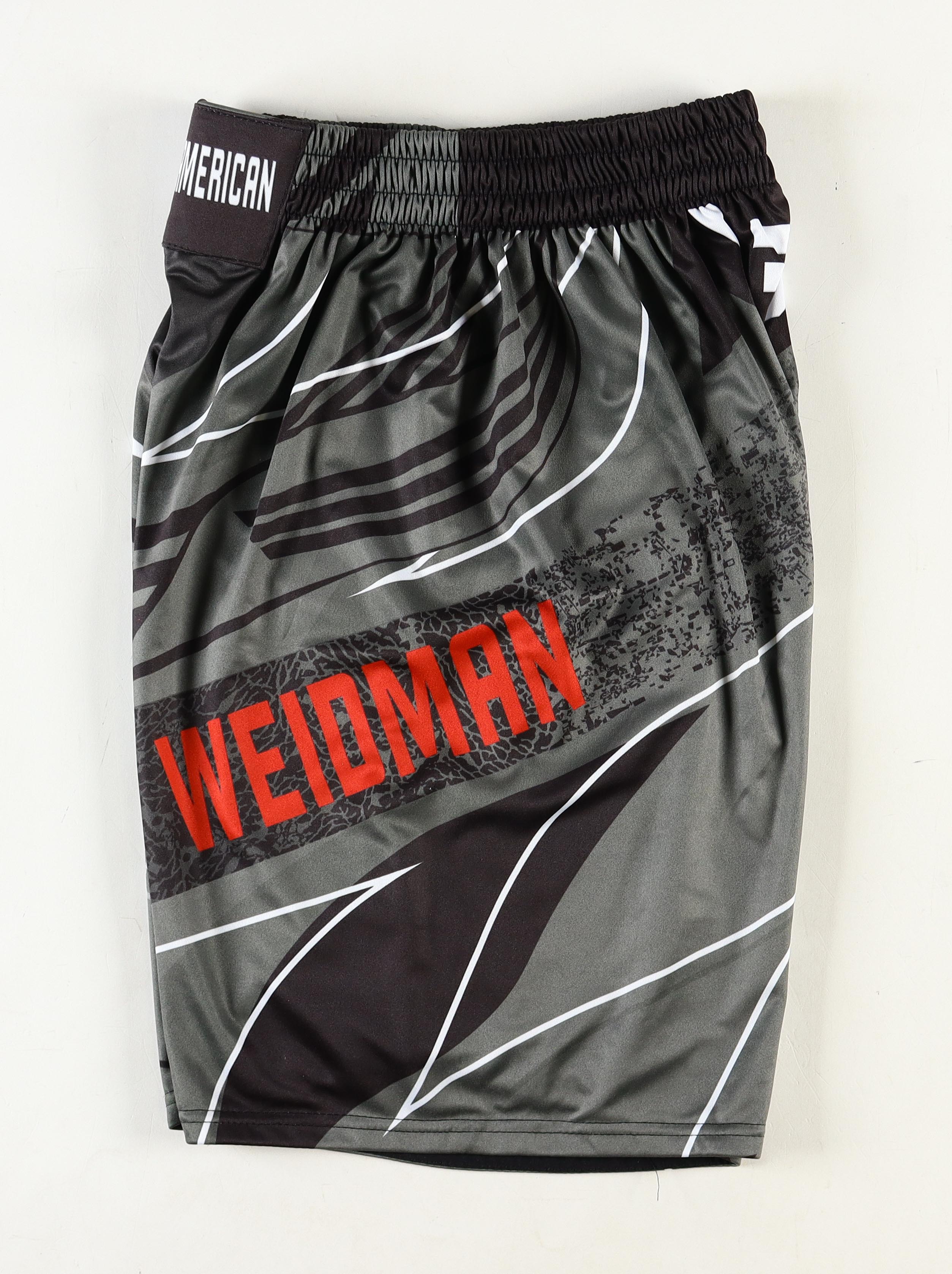 Custom MMA fight shorts. Hand-signed by Chris Weidman (UFC).