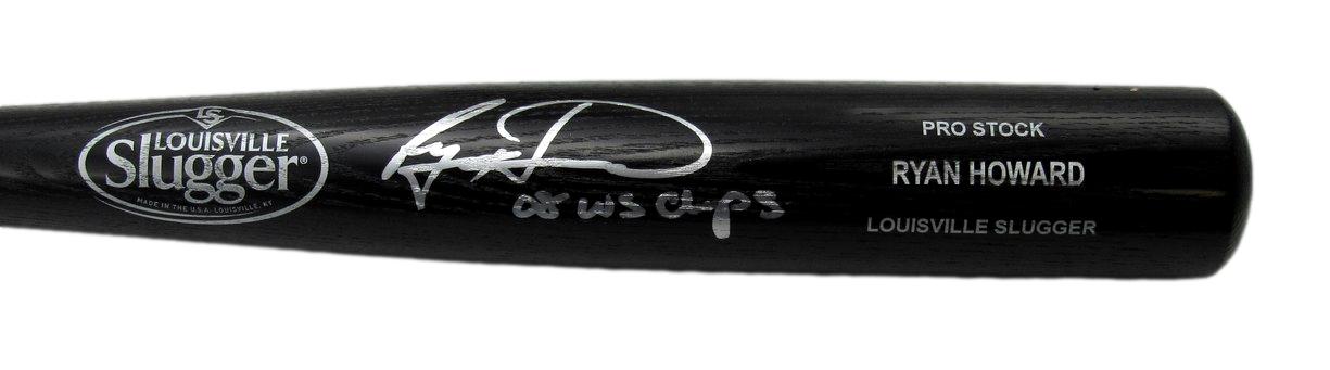 Louisville Slugger Pro Stock baseball bat. Hand-signed and inscribed by Ryan Howard (Philadelphia Phillies).