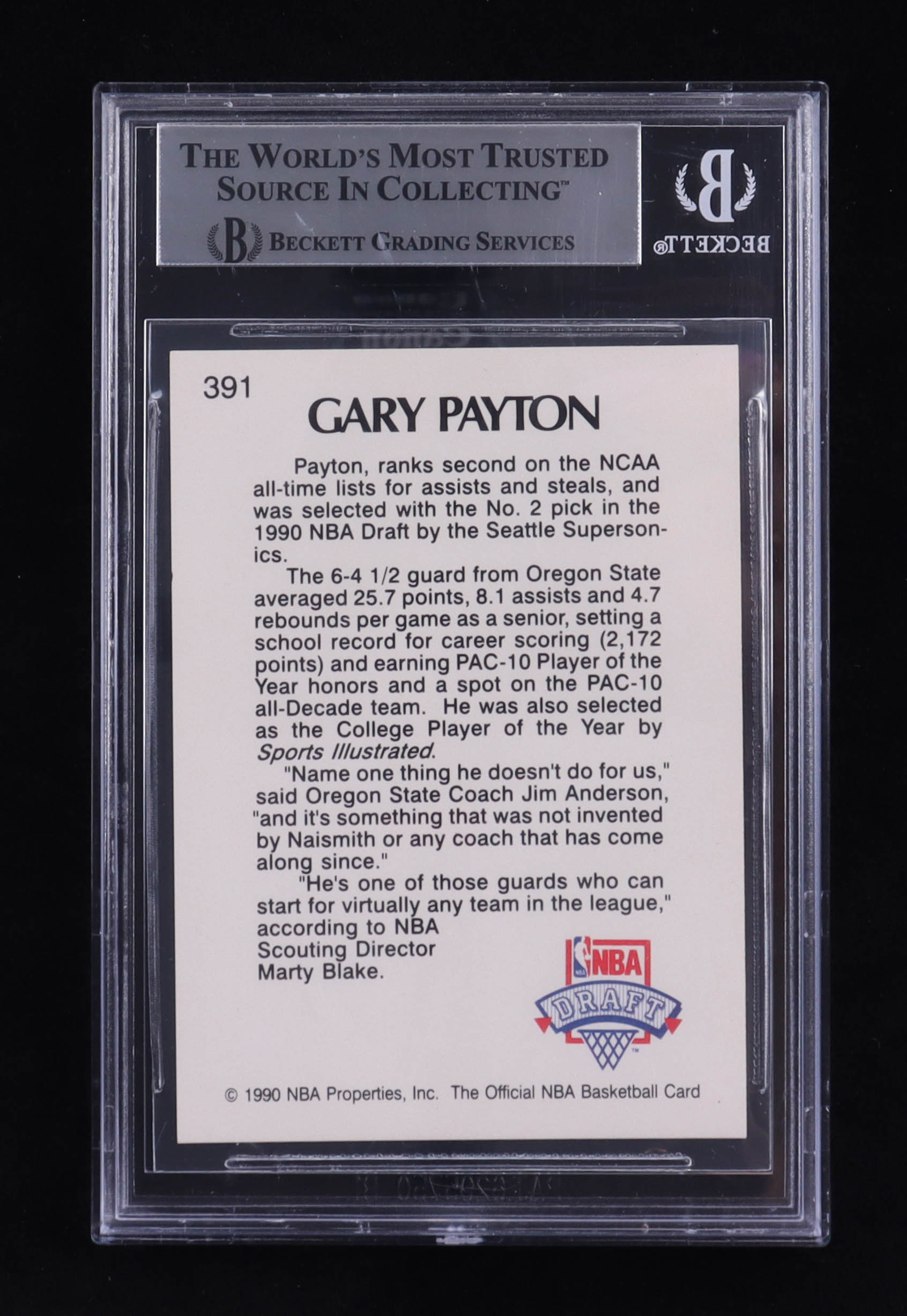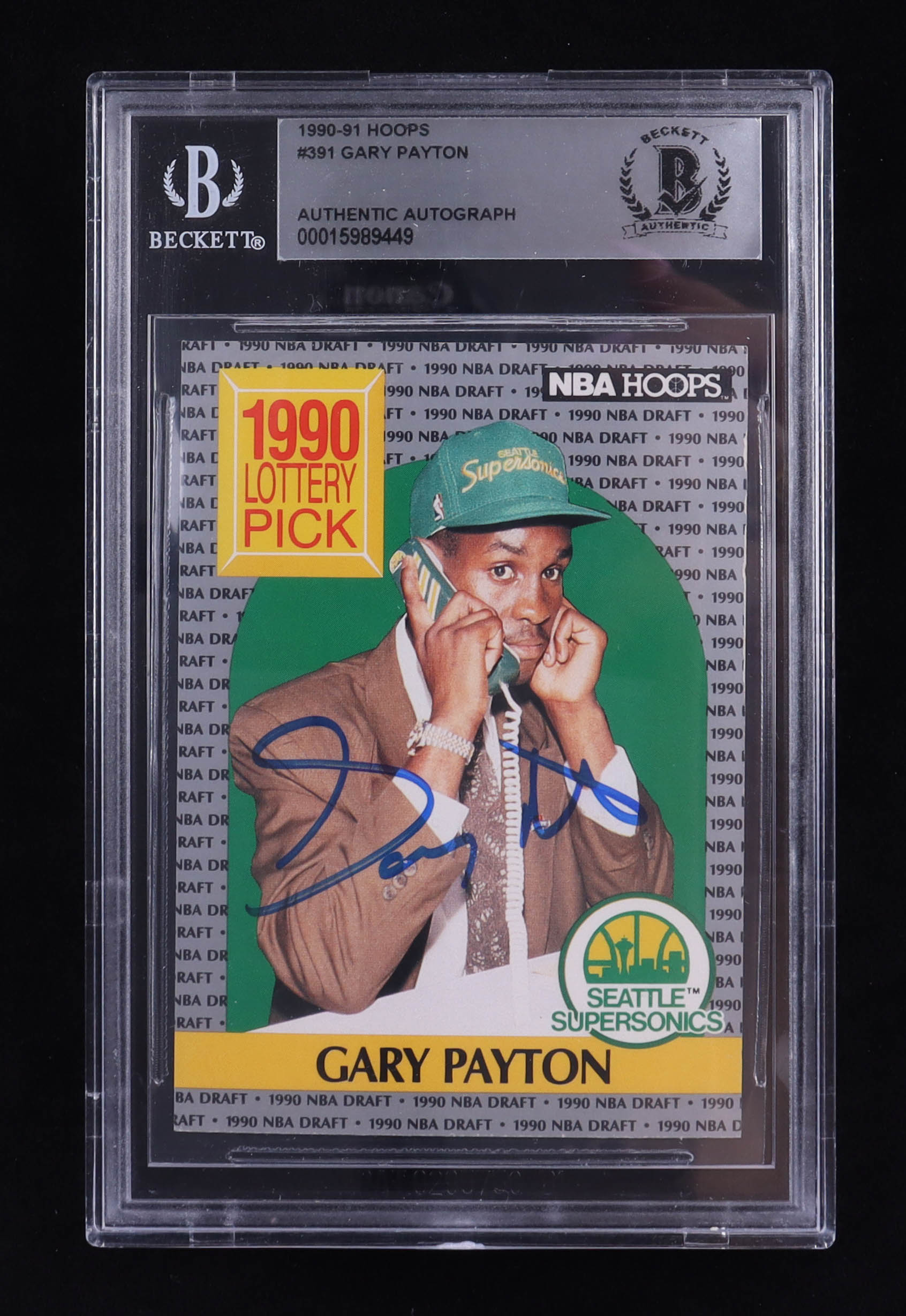 Gary Payton Signed 1990-91 Hoops #391 LS RC (BGS)
