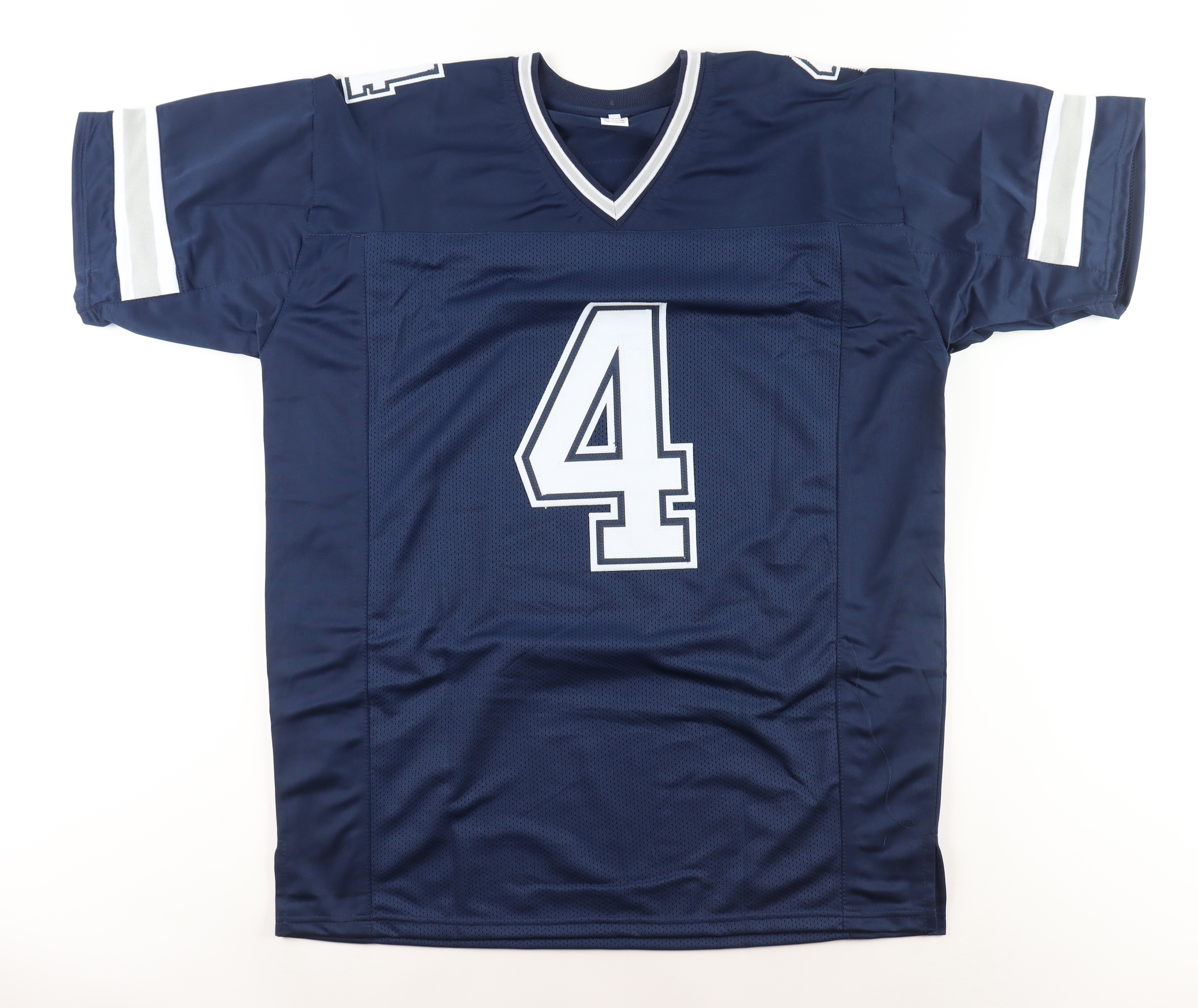 Custom jersey with everything sewn on, size XL. Hand-signed by Dak Prescott.