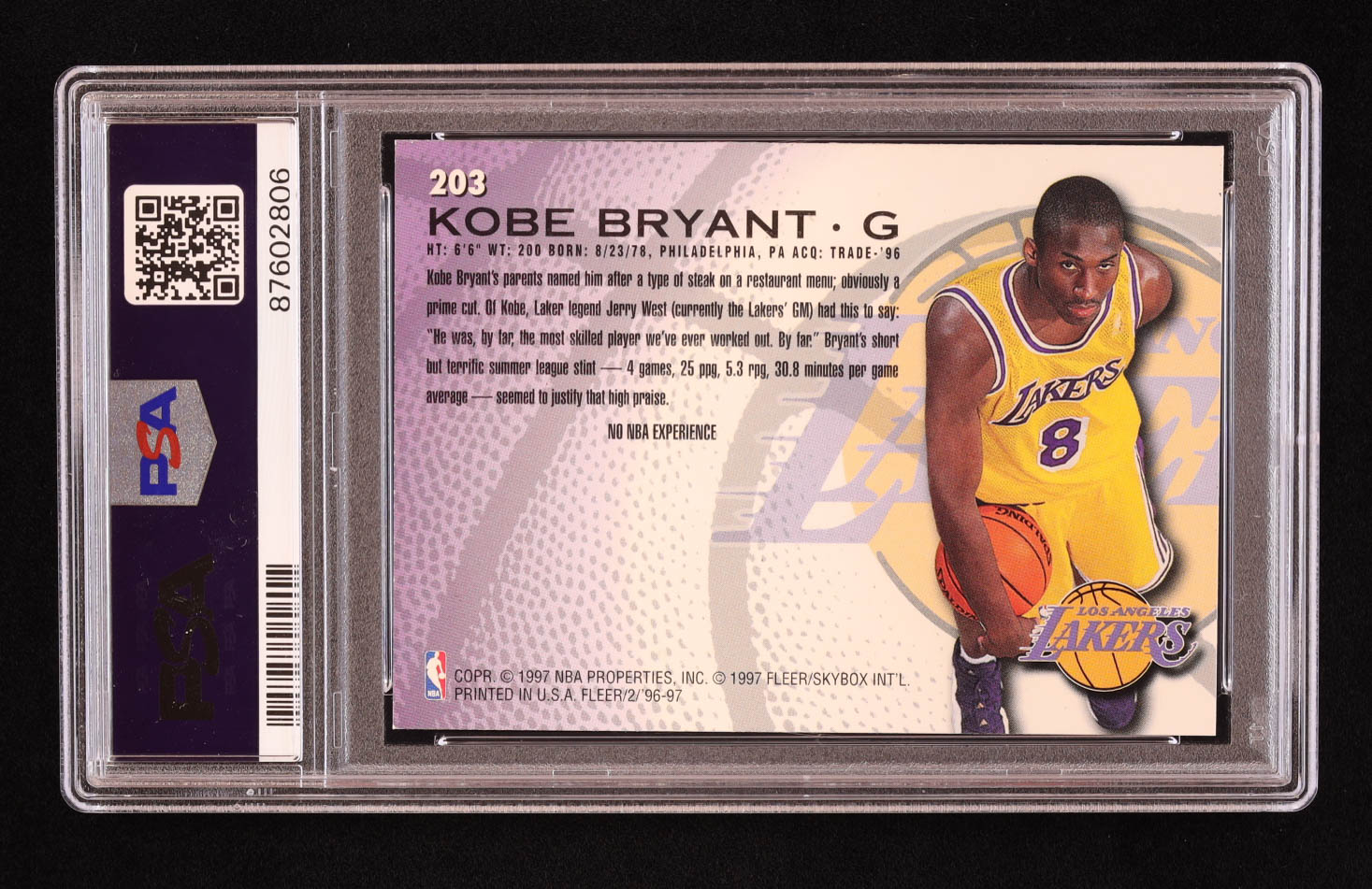 Kobe Bryant 1996-97 Fleer #203 RC (PSA 8)