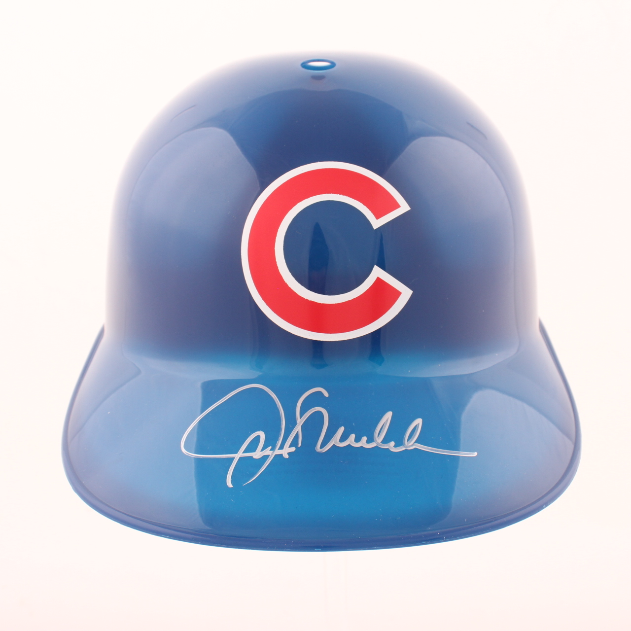Chicago Cubs full-size replica plastic batting helmet. Hand-signed by Joe Maddon.