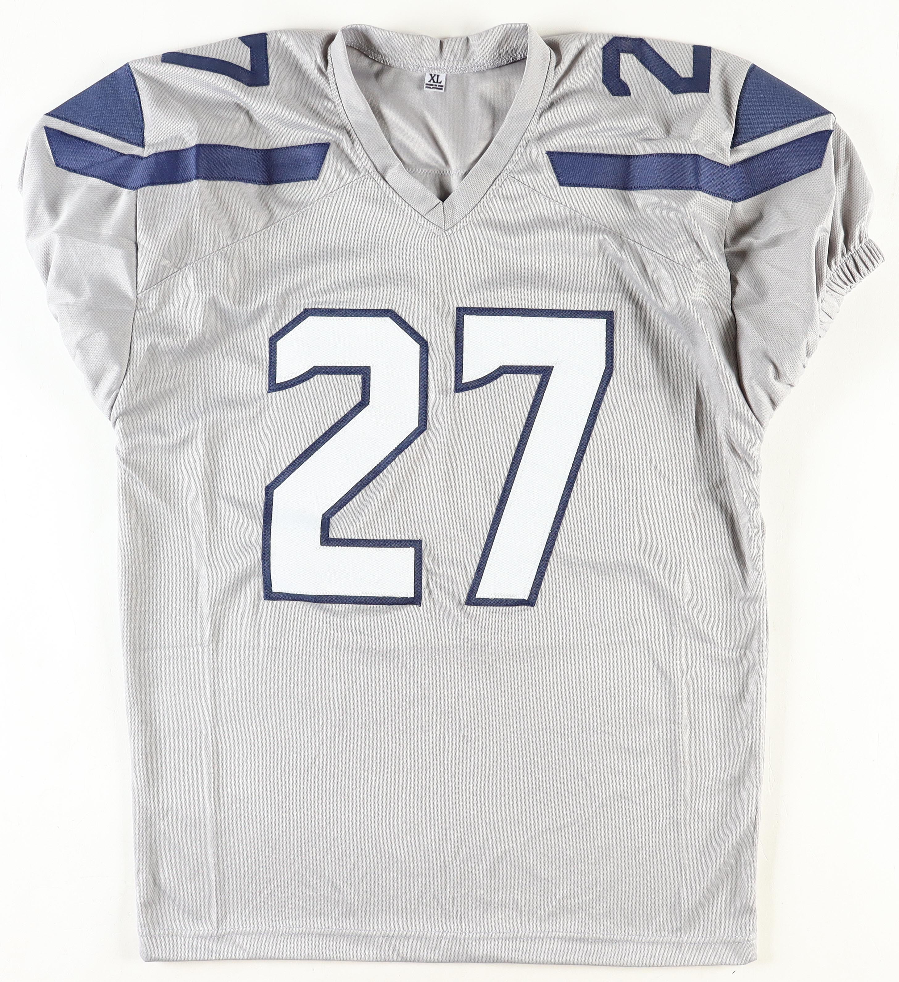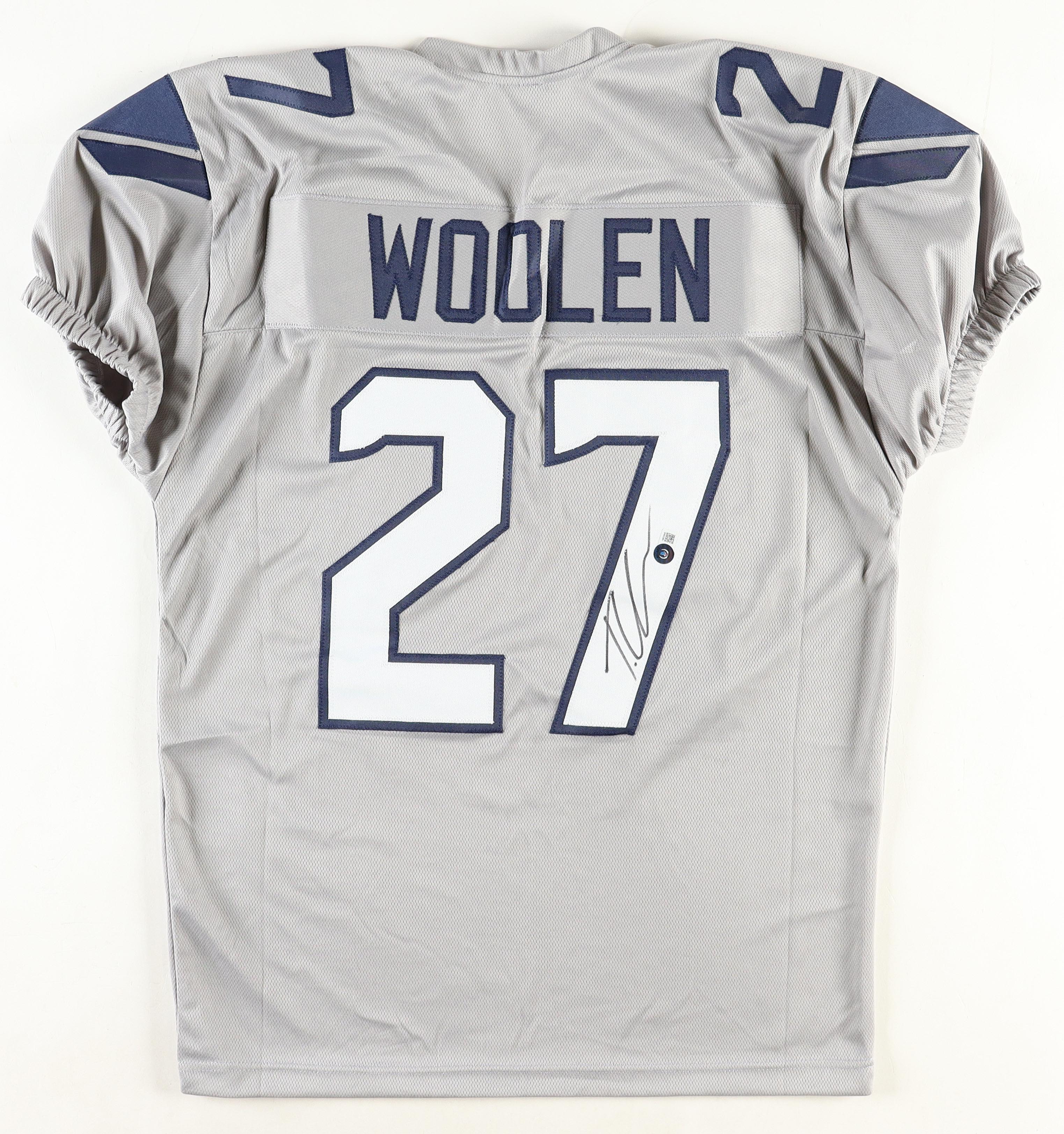 Custom jersey with everything sewn on, size XL. Hand-signed by Tariq Woolen.