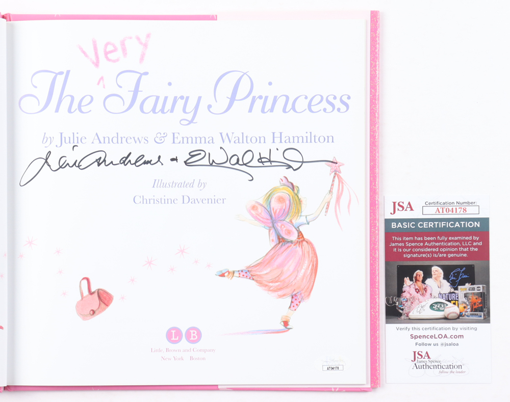 "The Very Fairy Princess" hardcover book has been hand-signed on the inside cover page by Julie Andrews and Emma Walton Hamilton. Please note the signature bled onto the page on the other side.