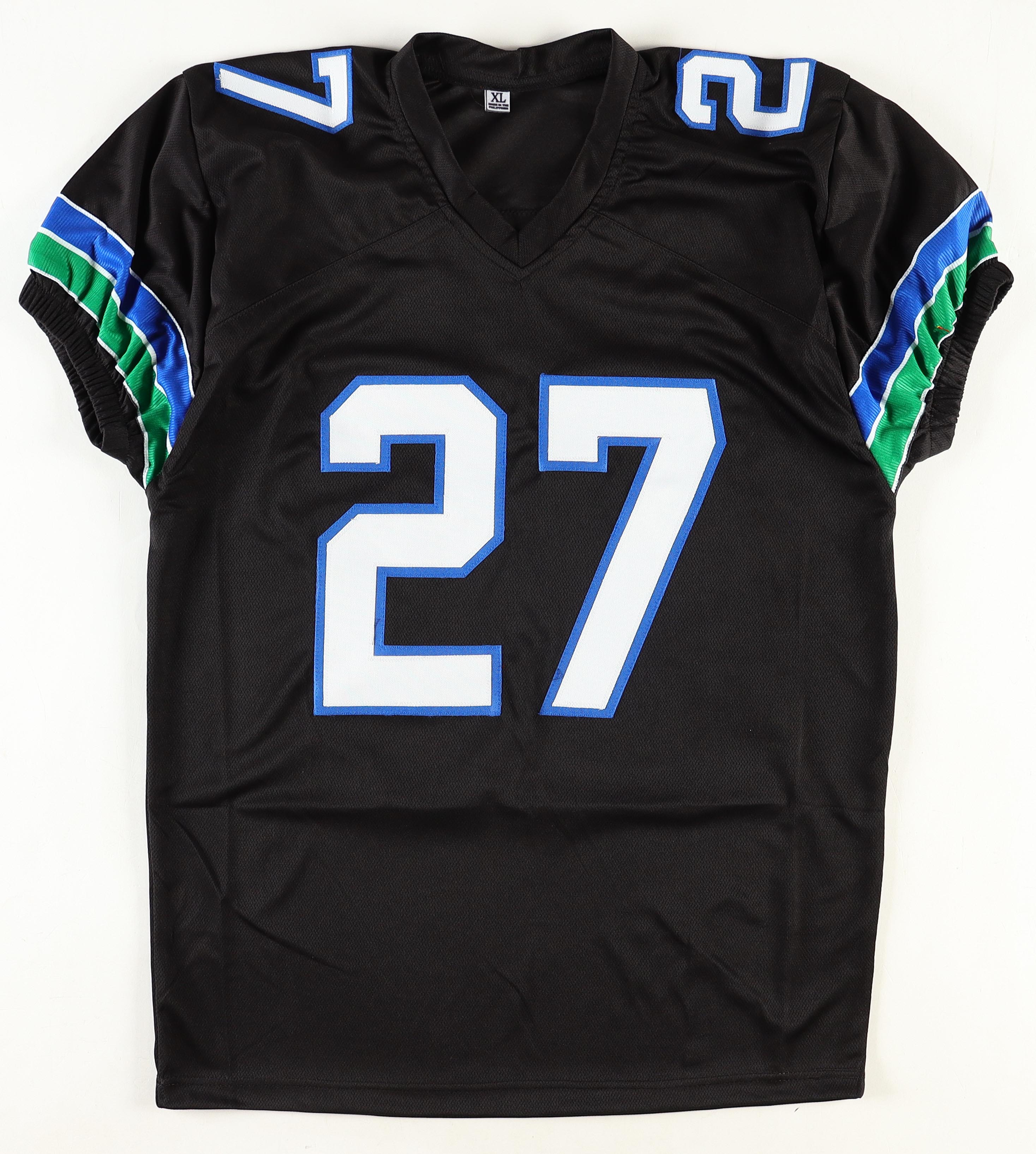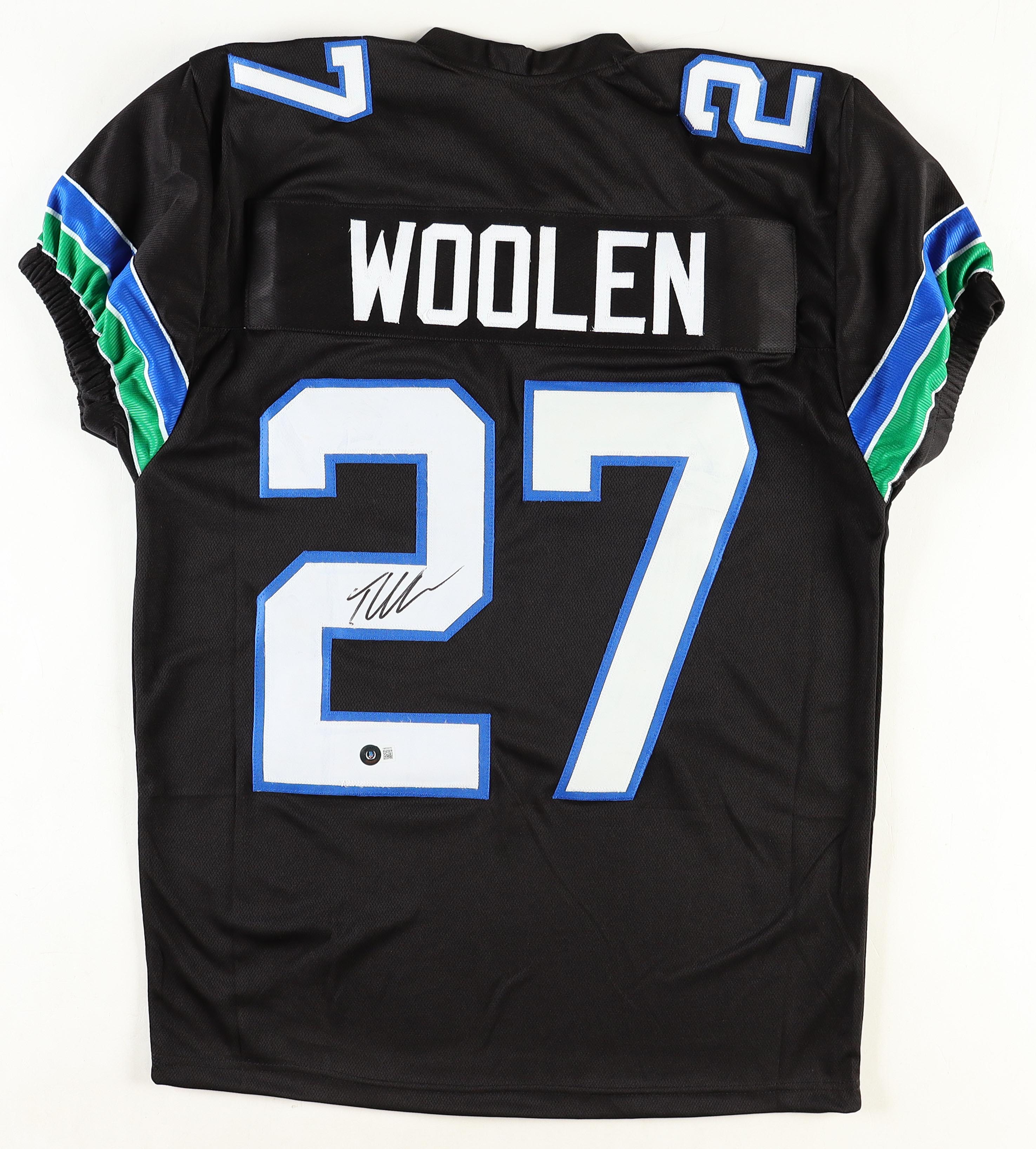 Custom jersey with everything is sewn on, size XL. Hand-signed by Tariq Woolen.
