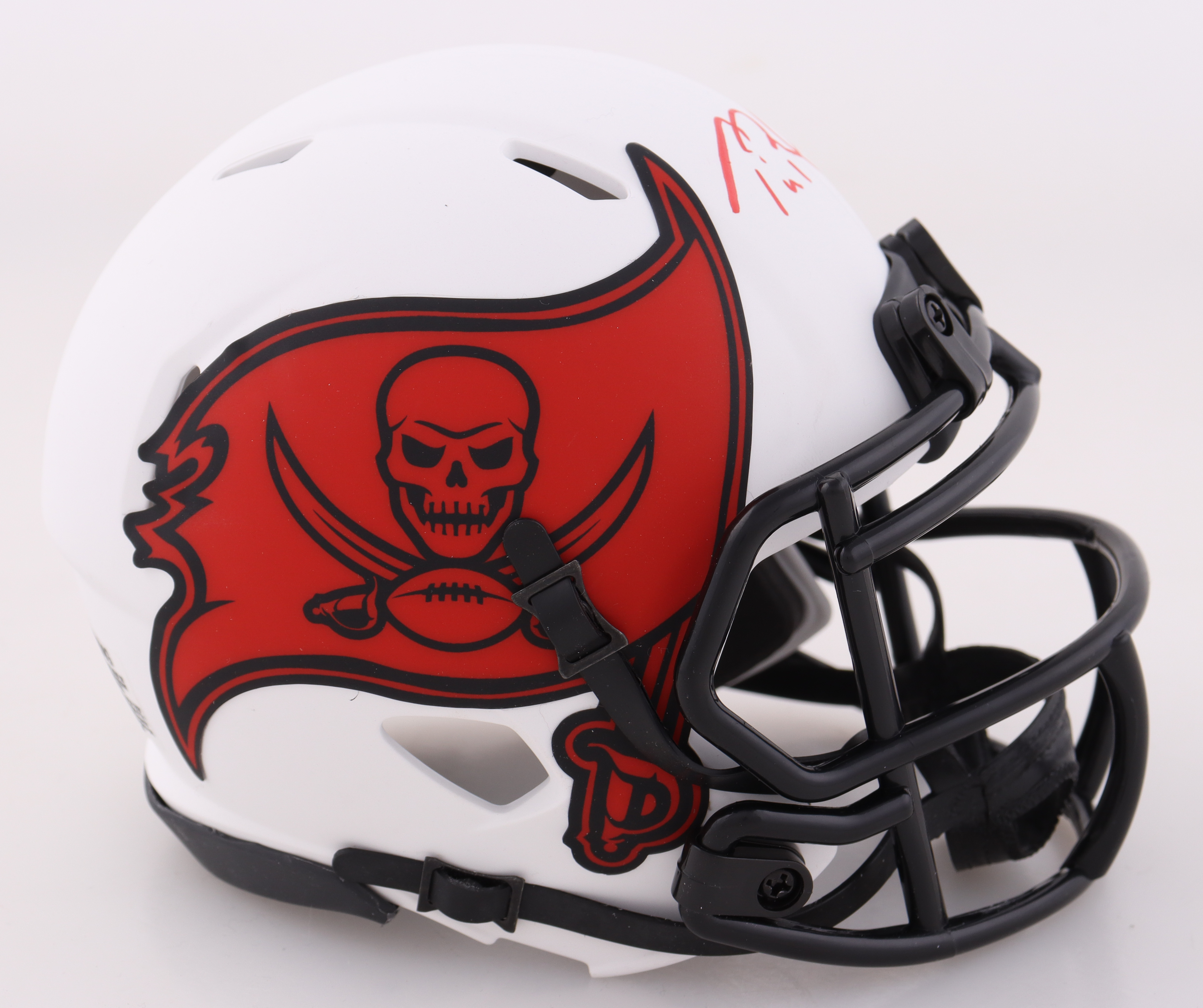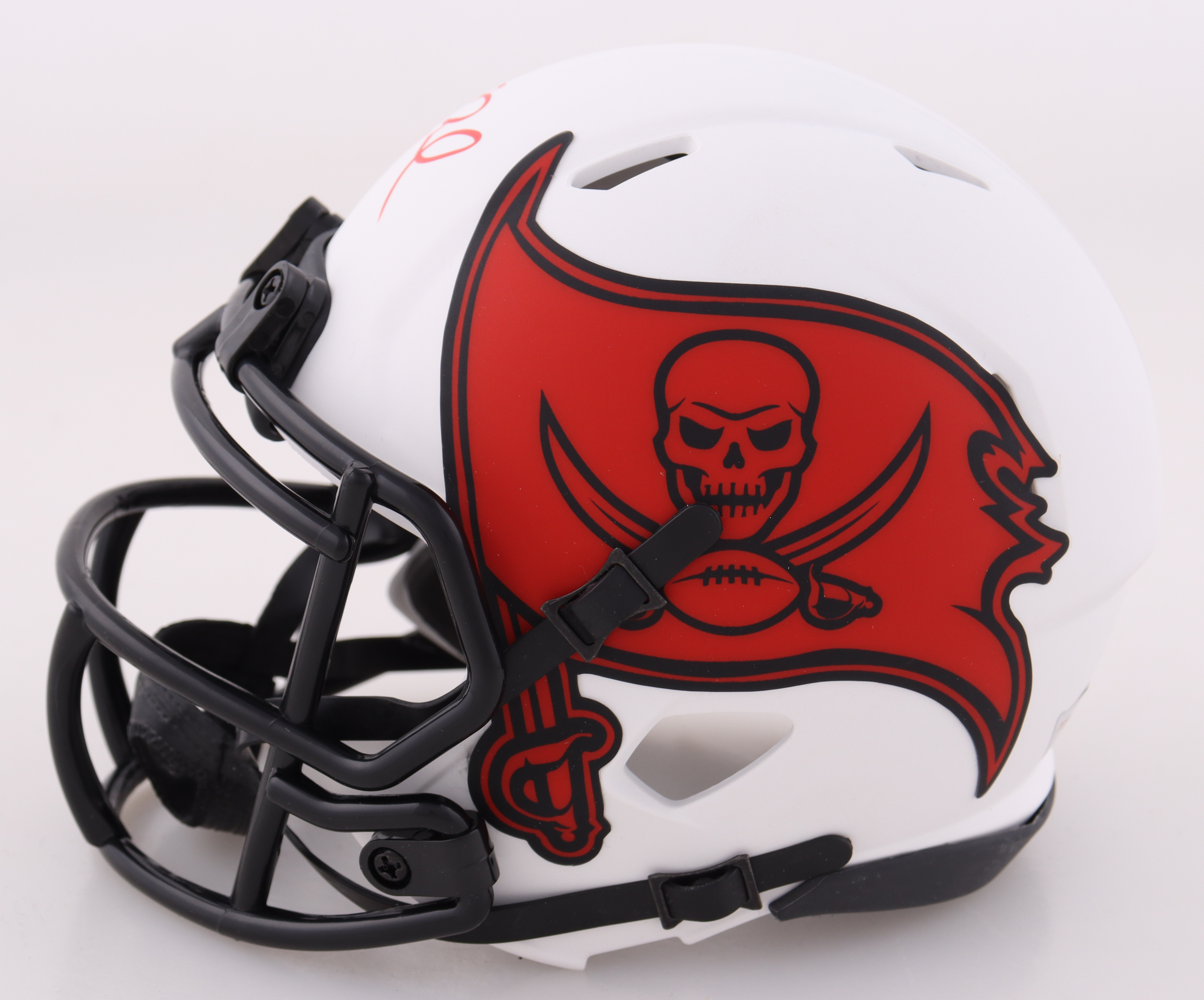Riddell Tampa Bay Buccaneers Lunar Eclipse alternate speed mini helmet has been hand-signed by NFL legend, Tom Brady!