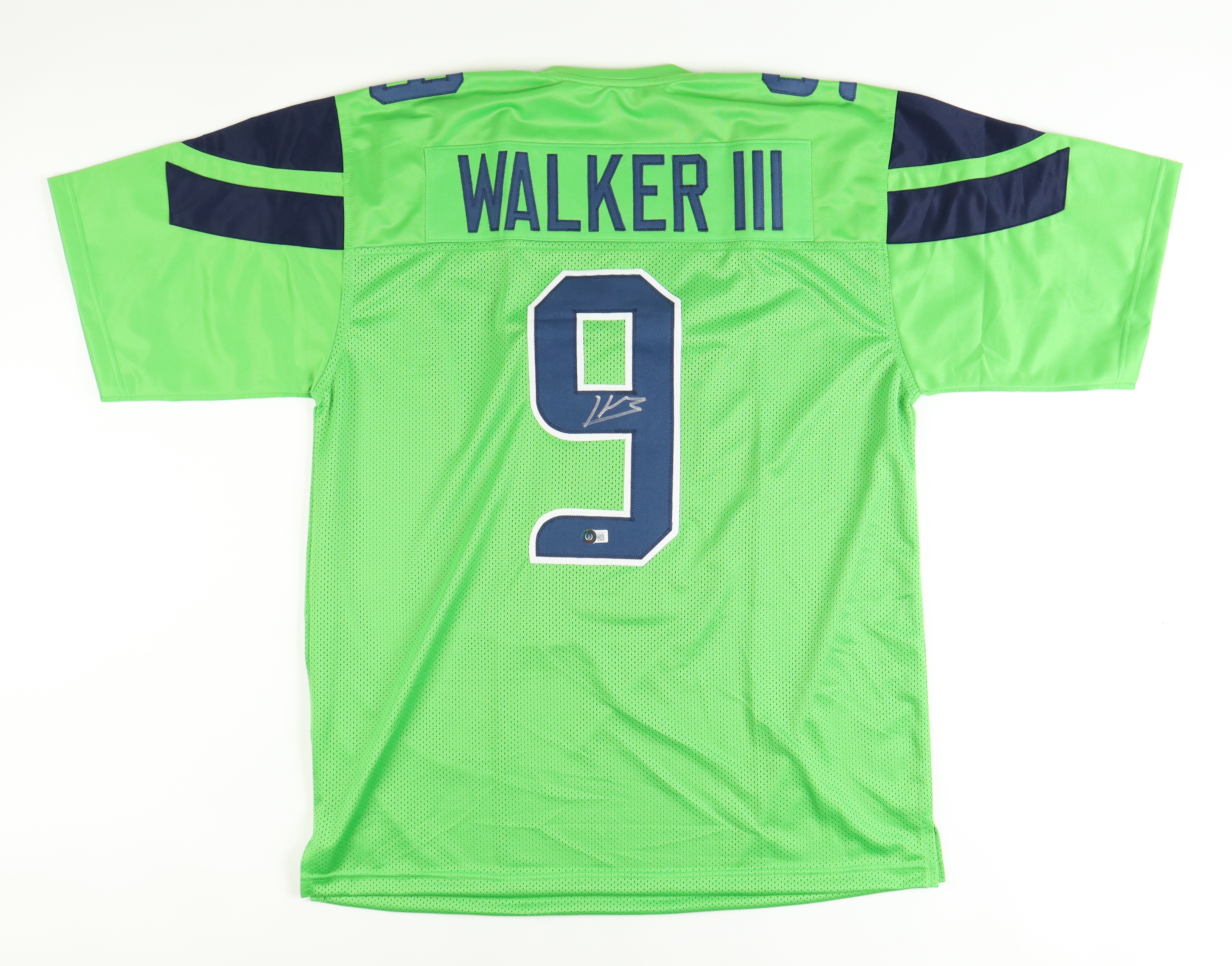 Custom jersey. Everything sewn on, size XL. Hand-signed by Kenneth Walker III.