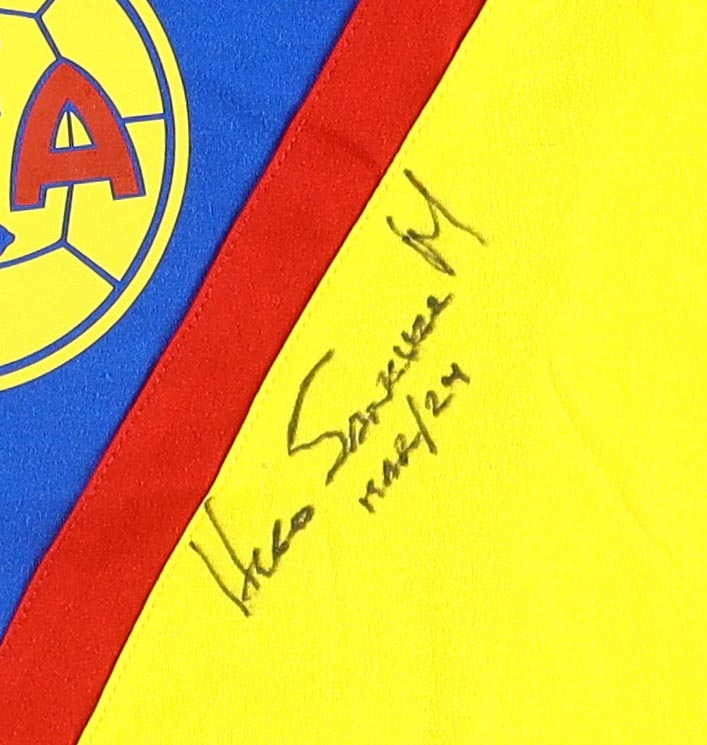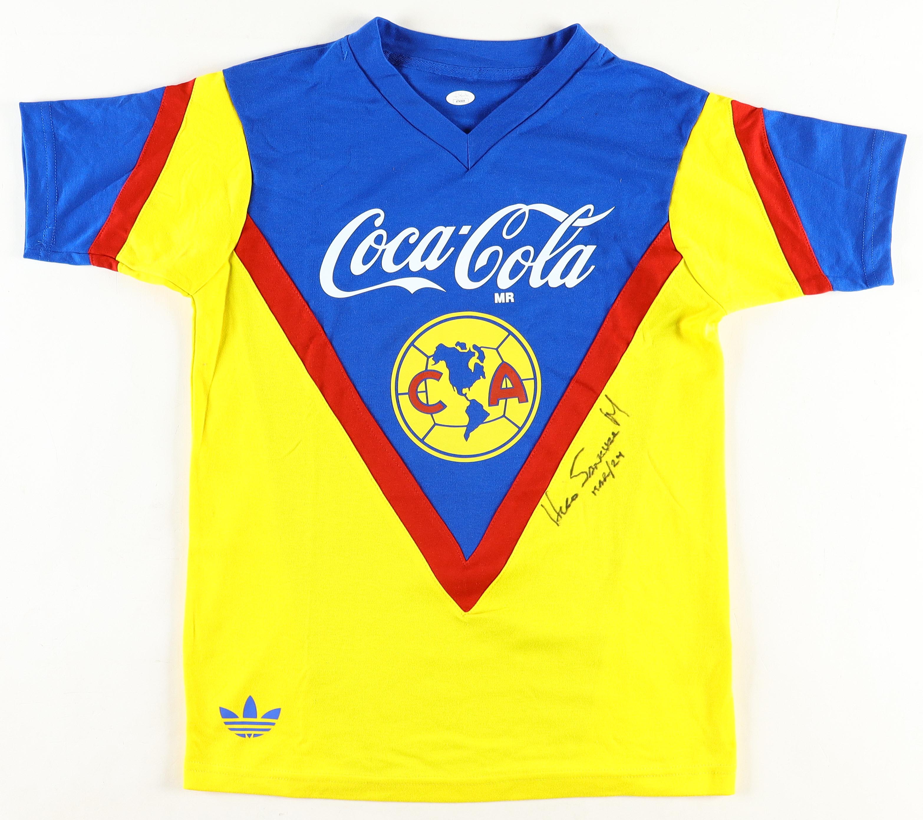 Adidas jersey with everything printed on, size M. Has been hand-signed by Hugo Sanchez (Club America).