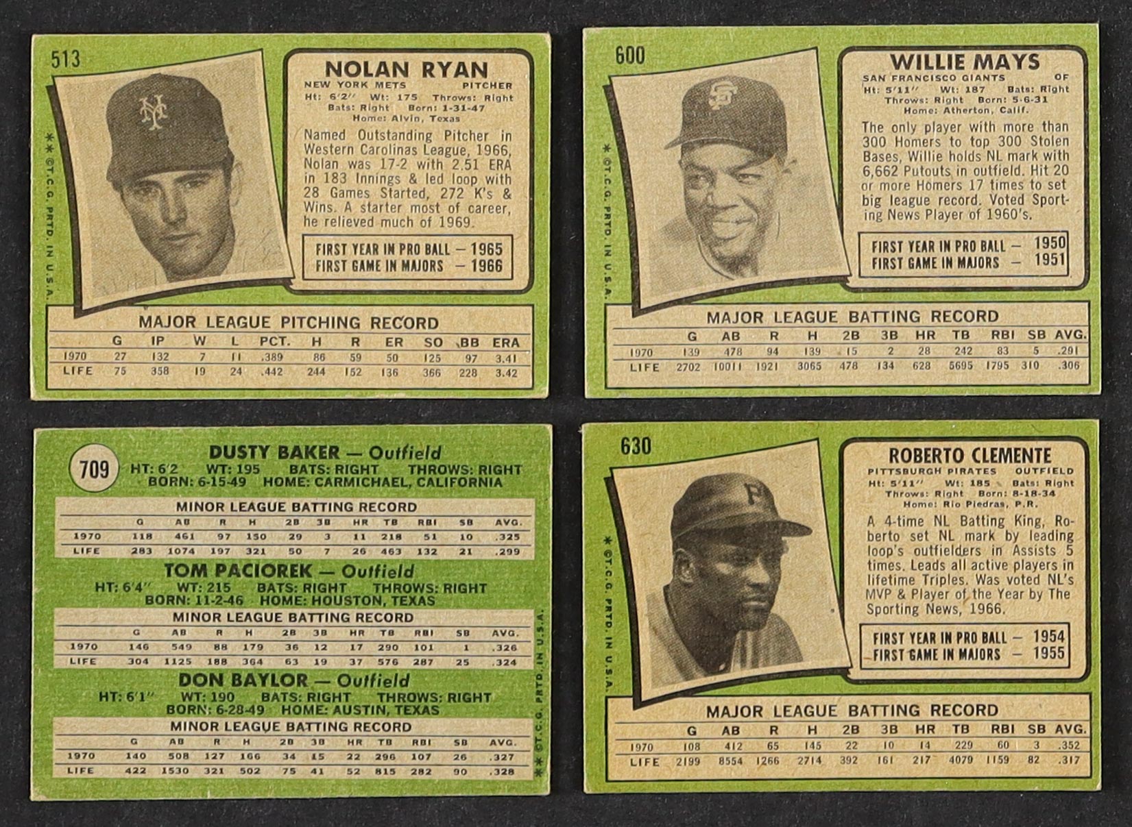 1971 Topps Complete Set of (752) Baseball Cards with Roberto Clementa #630, #600 Willie Mays, #513 Nolan Ryan, Baker - Paciorek - Baylor #709