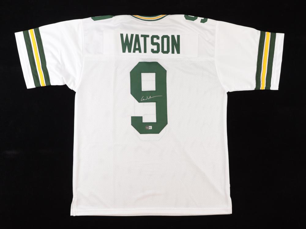Custom jersey. Everything is sewn on, size XL. Hand-signed by Christian Watson.