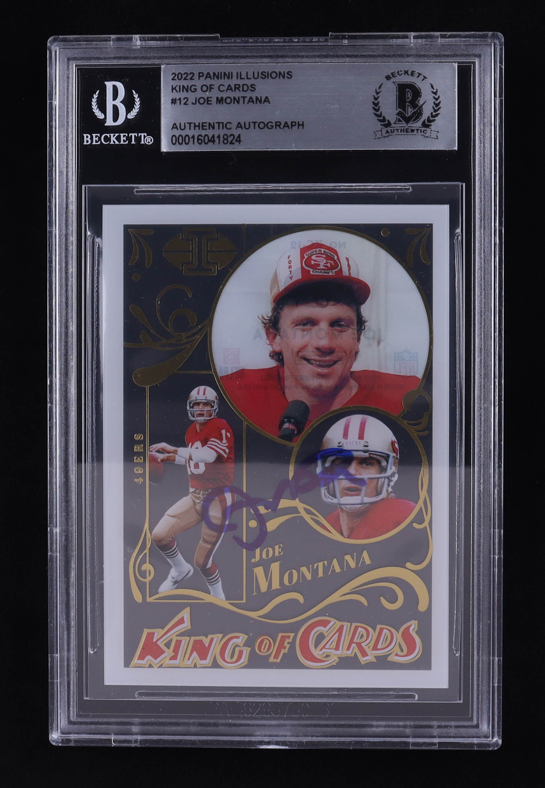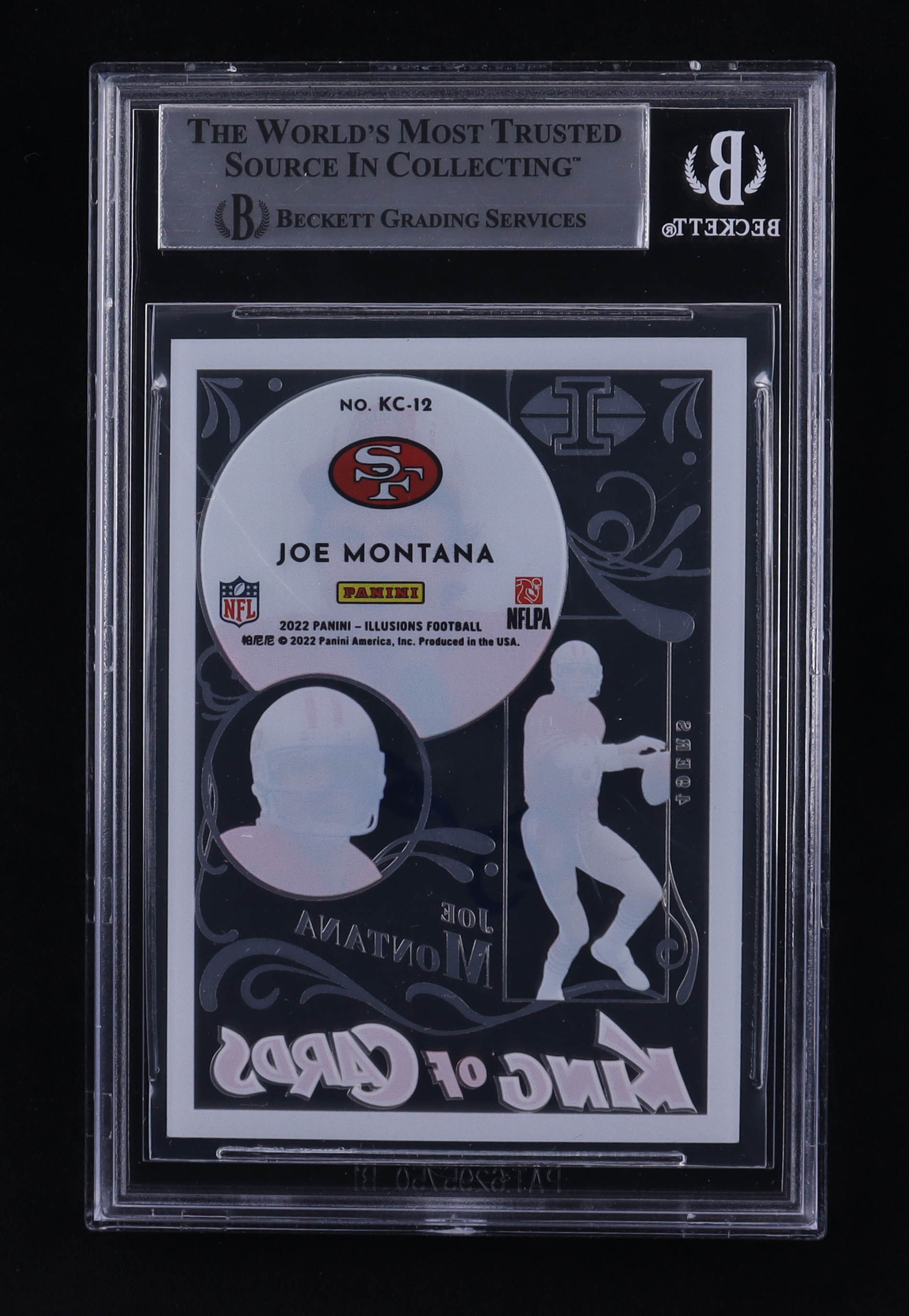 Joe Montana Signed 2022 Panini Illusions King of Cards #12 (BGS)