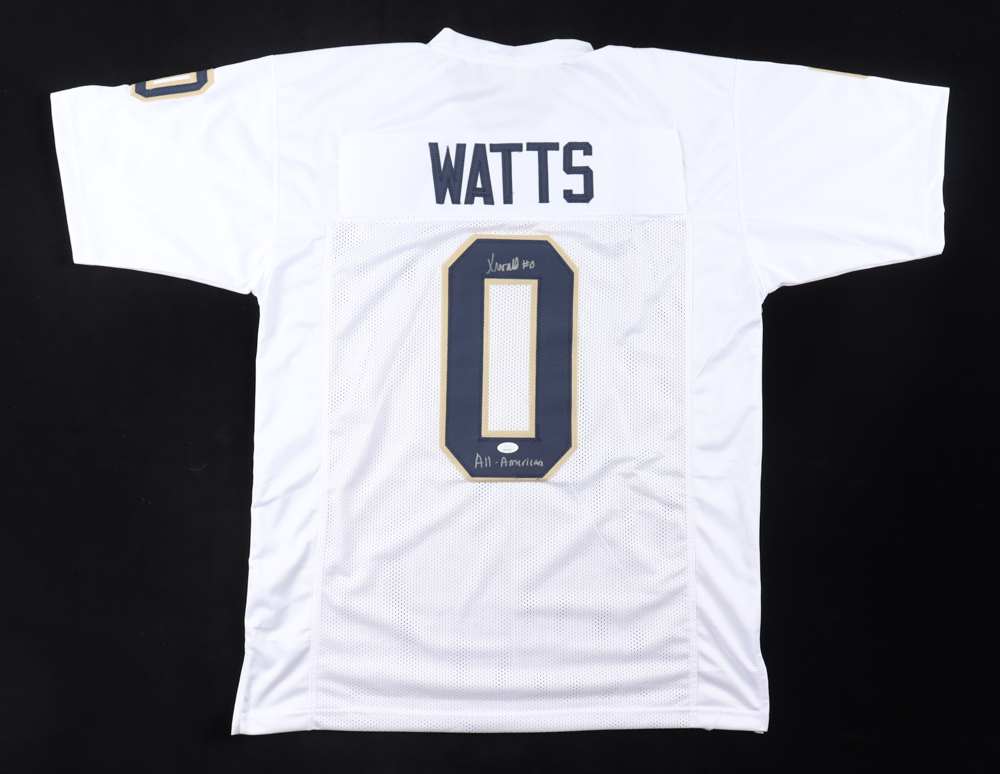 Custom jersey. Everything is sewn on, size XL. Has been hand-signed and inscribed by Xavier Watts.