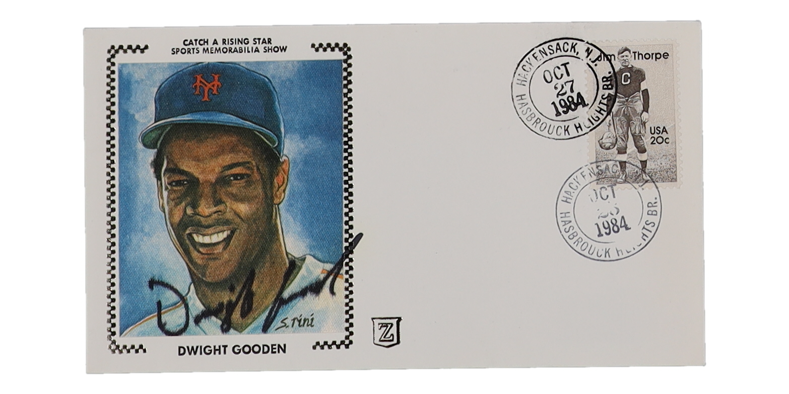 First Day Cover envelope dated October 27th, 1984. Hand-signed by Dwight "Doc" Gooden (New York Mets).