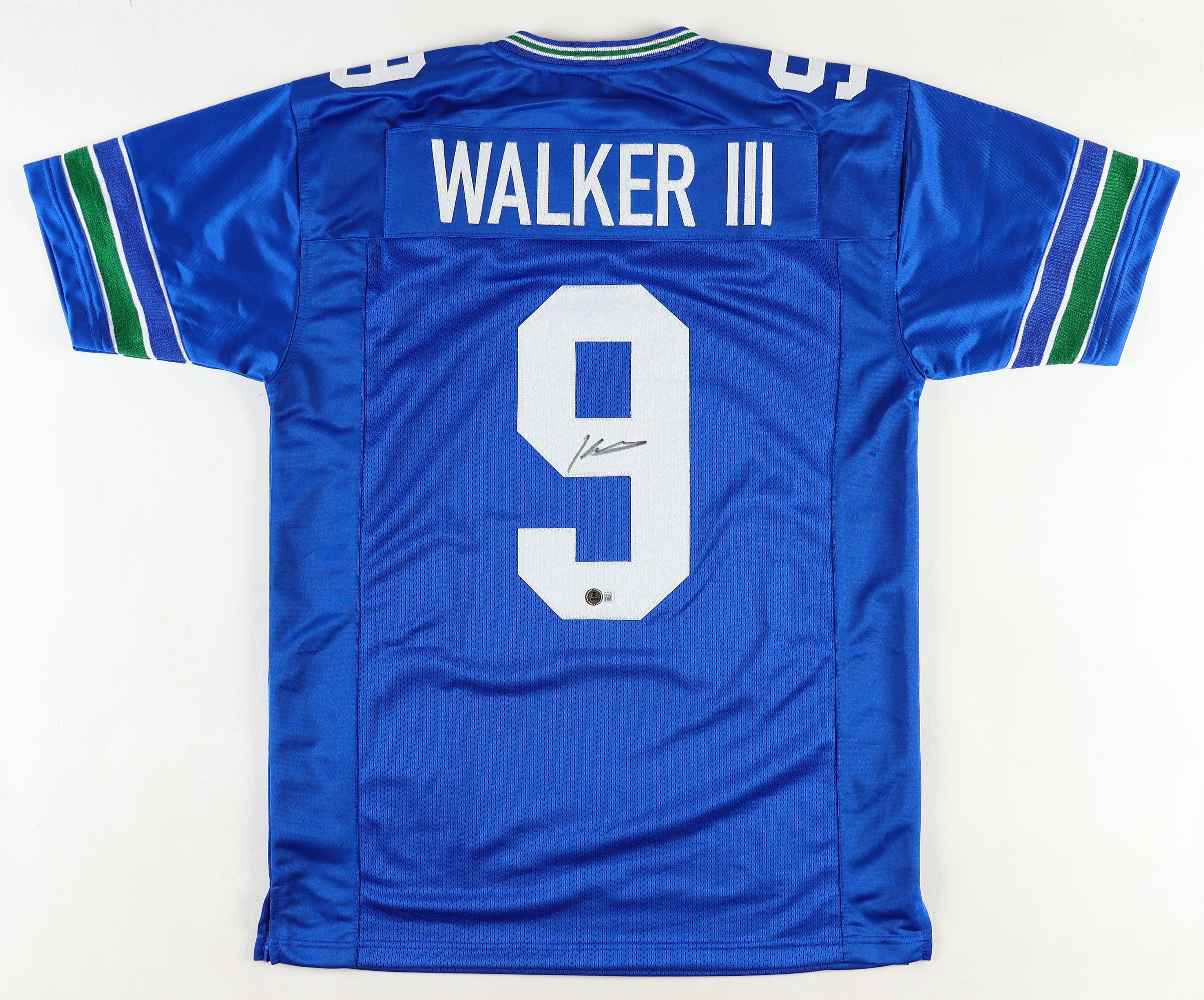 Custom jersey with everything sewn on, size XL. Hand-signed by Kenneth Walker III.