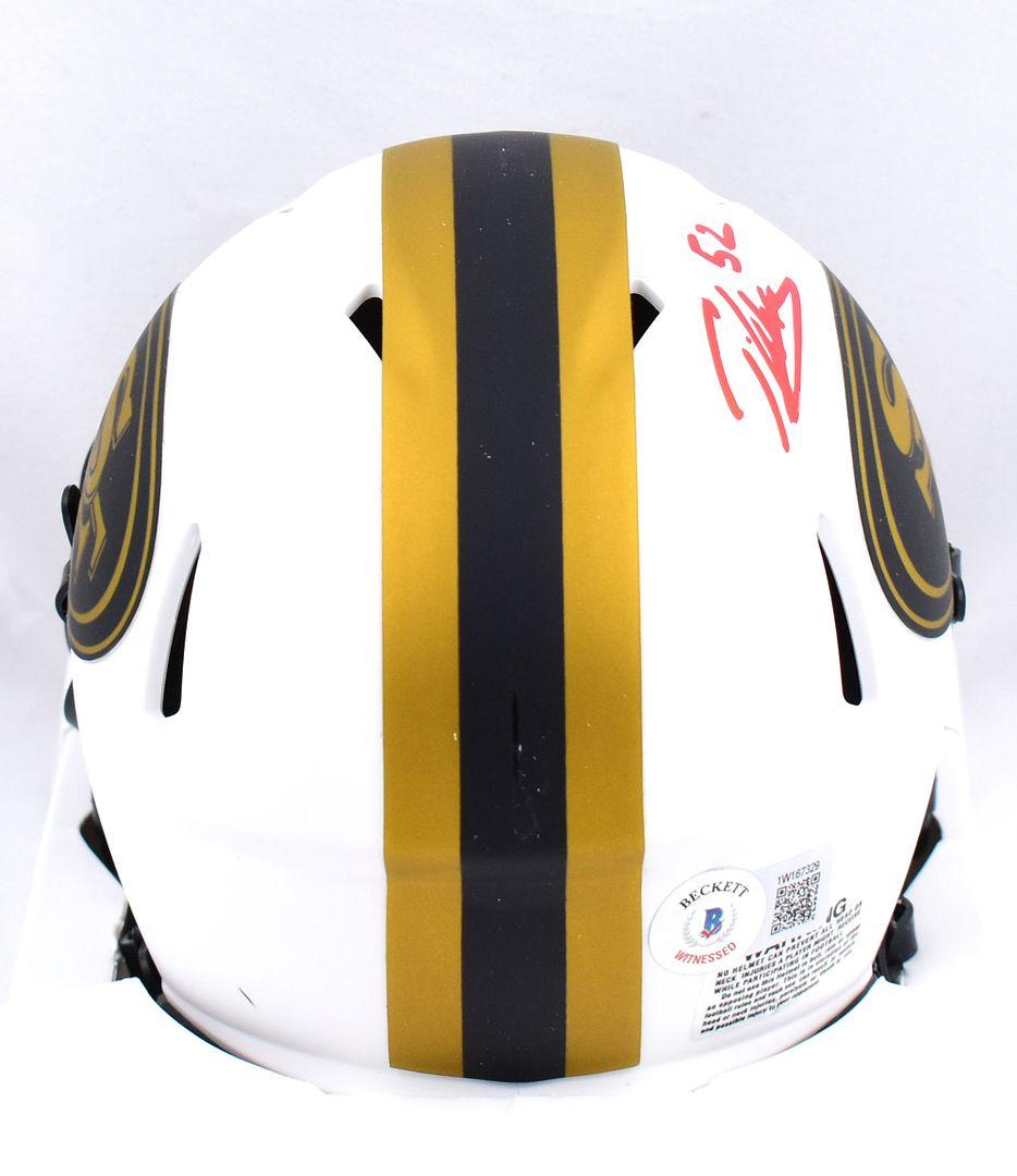 Riddell San Francisco 49ers Lunar Eclipse alternate speed mini helmet has been hand-signed by Patrick Willis (HOF).