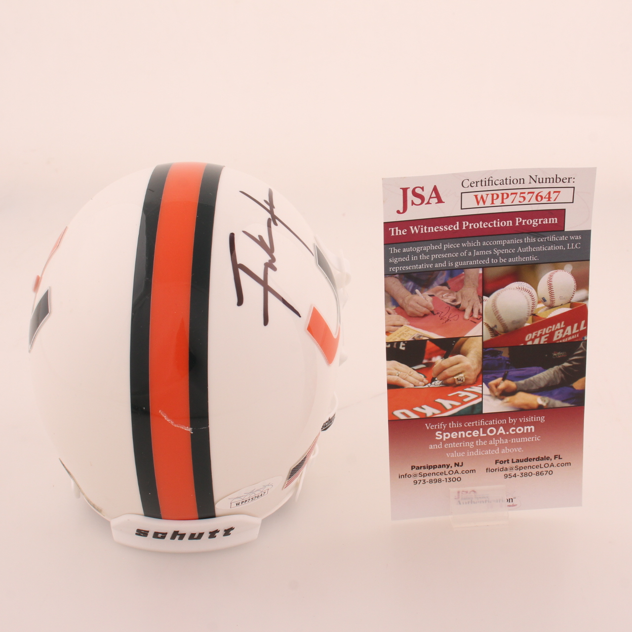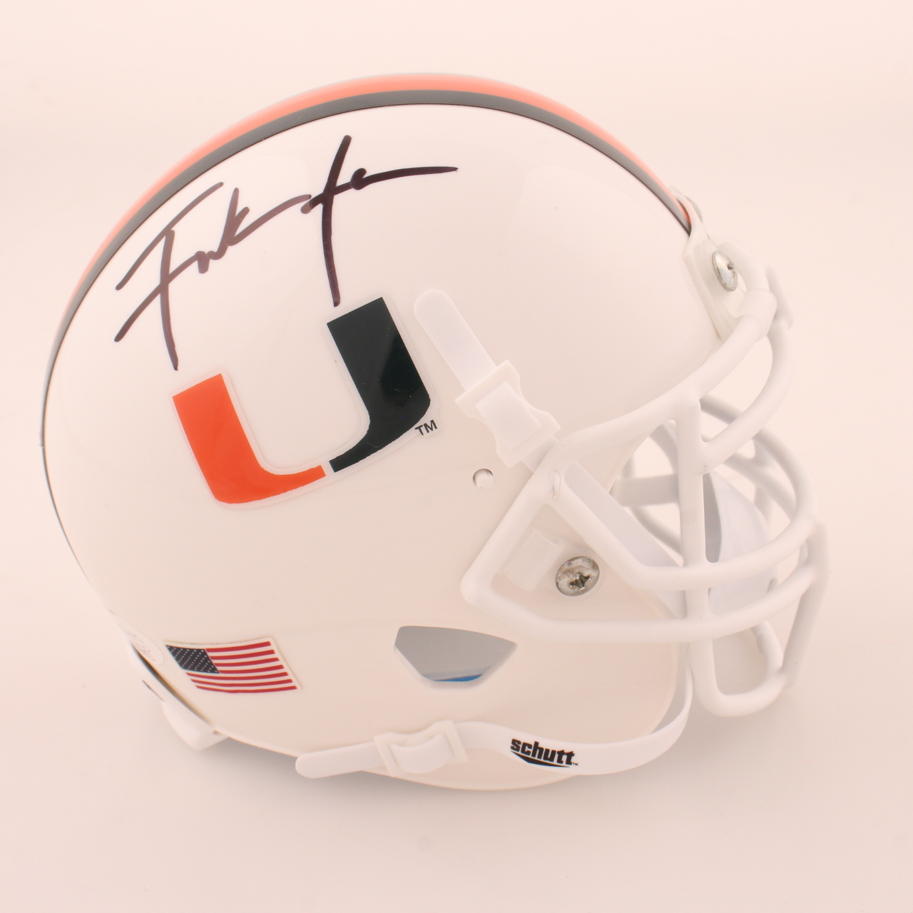 Schutt Miami Hurricanes mini helmet. Hand-signed by Frank Gore.