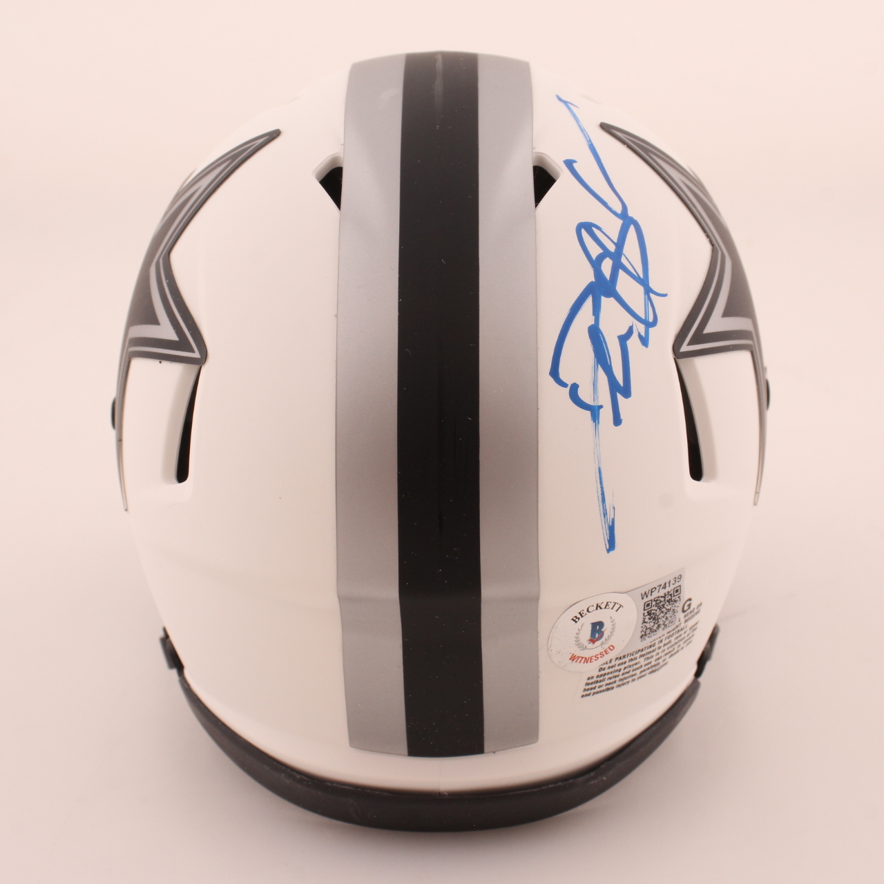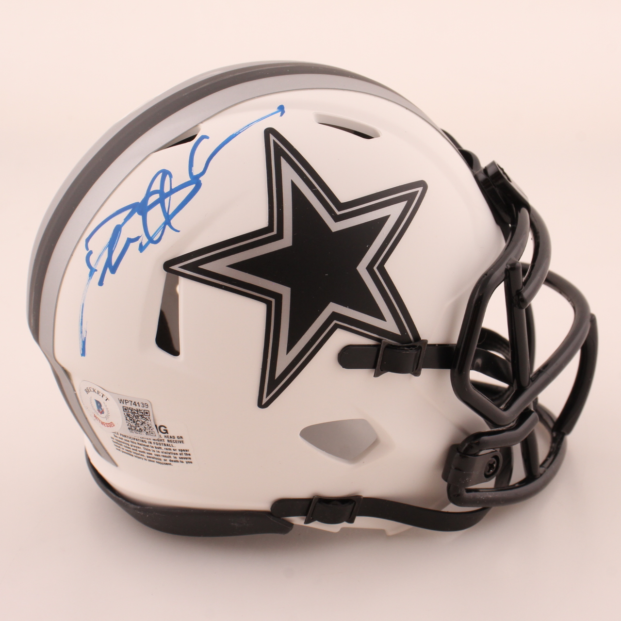 Riddell Dallas Cowboys Lunar Eclipse Alternate speed mini helmet. Hand-signed by Deion Sanders.