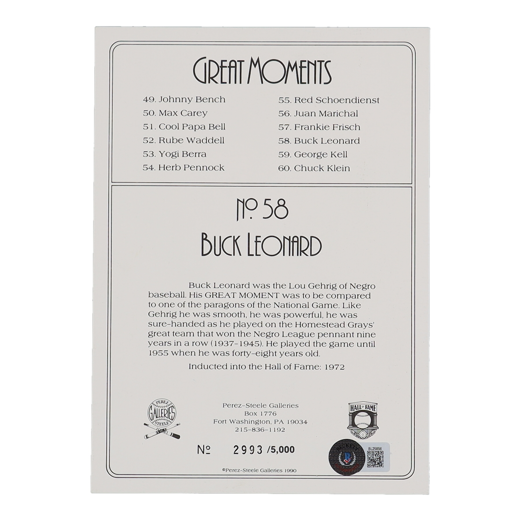 Buck Leonard Signed LE 1990 Perez-Steele Great Moments #58 (Beckett)