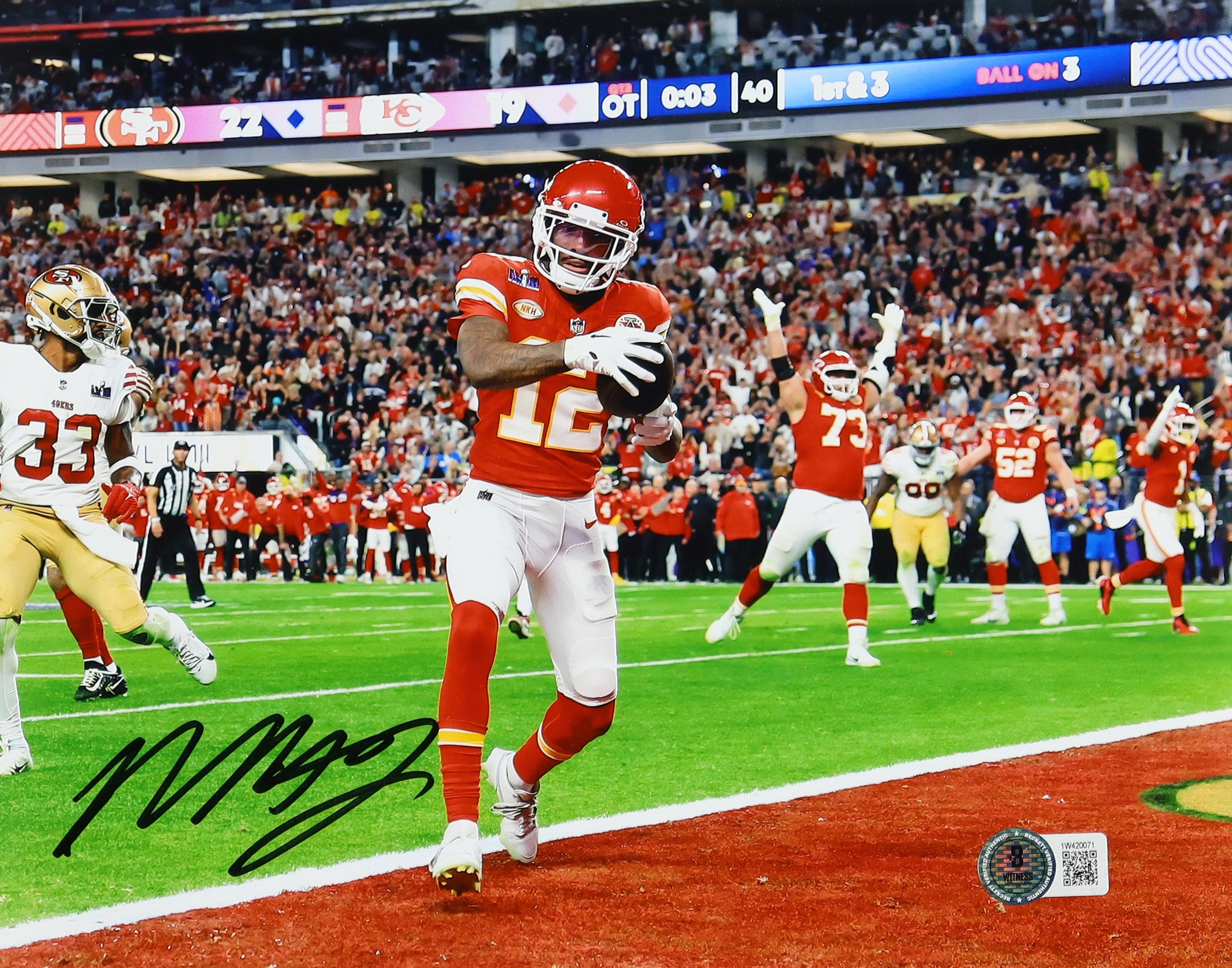 Photo measures 8" x 10" in size and has been hand-signed by Mecole Hardman Jr. (Kansas City Chiefs).