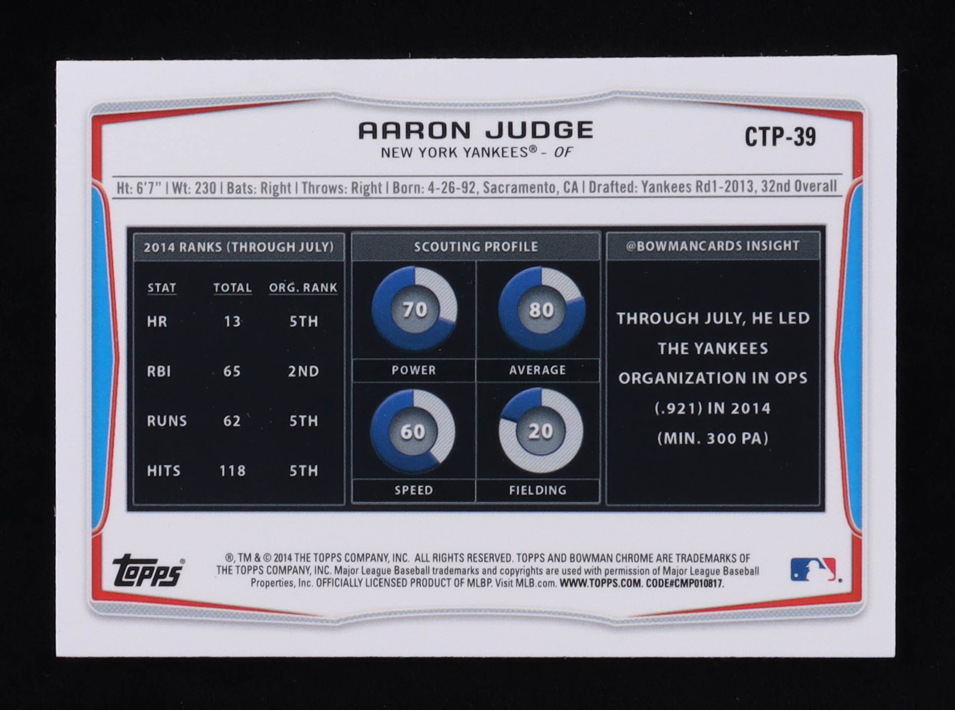 Aaron Judge 2014 Bowman Chrome Draft Top Prospects #CTP39 RC