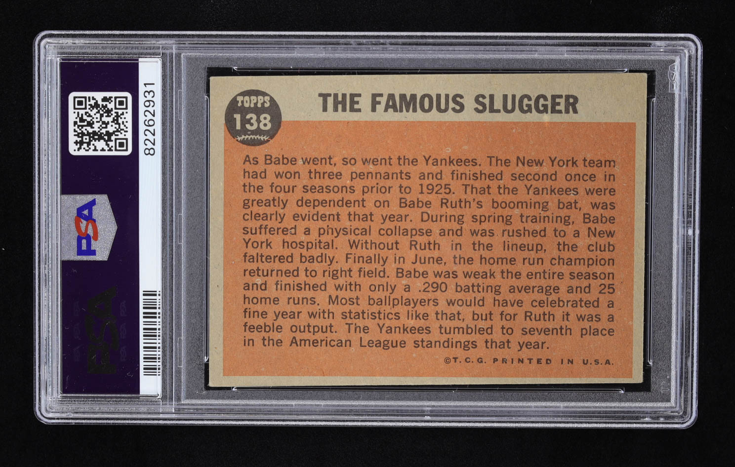 Babe Ruth 1962 Topps #138 Special 4 The Famous Slugger (PSA 4)