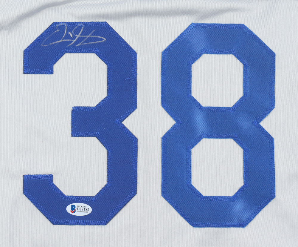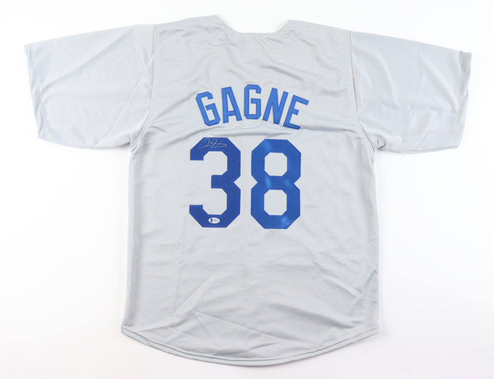 Custom style jersey with everything sewn on, size XL. Hand-signed by Eric Gagne.