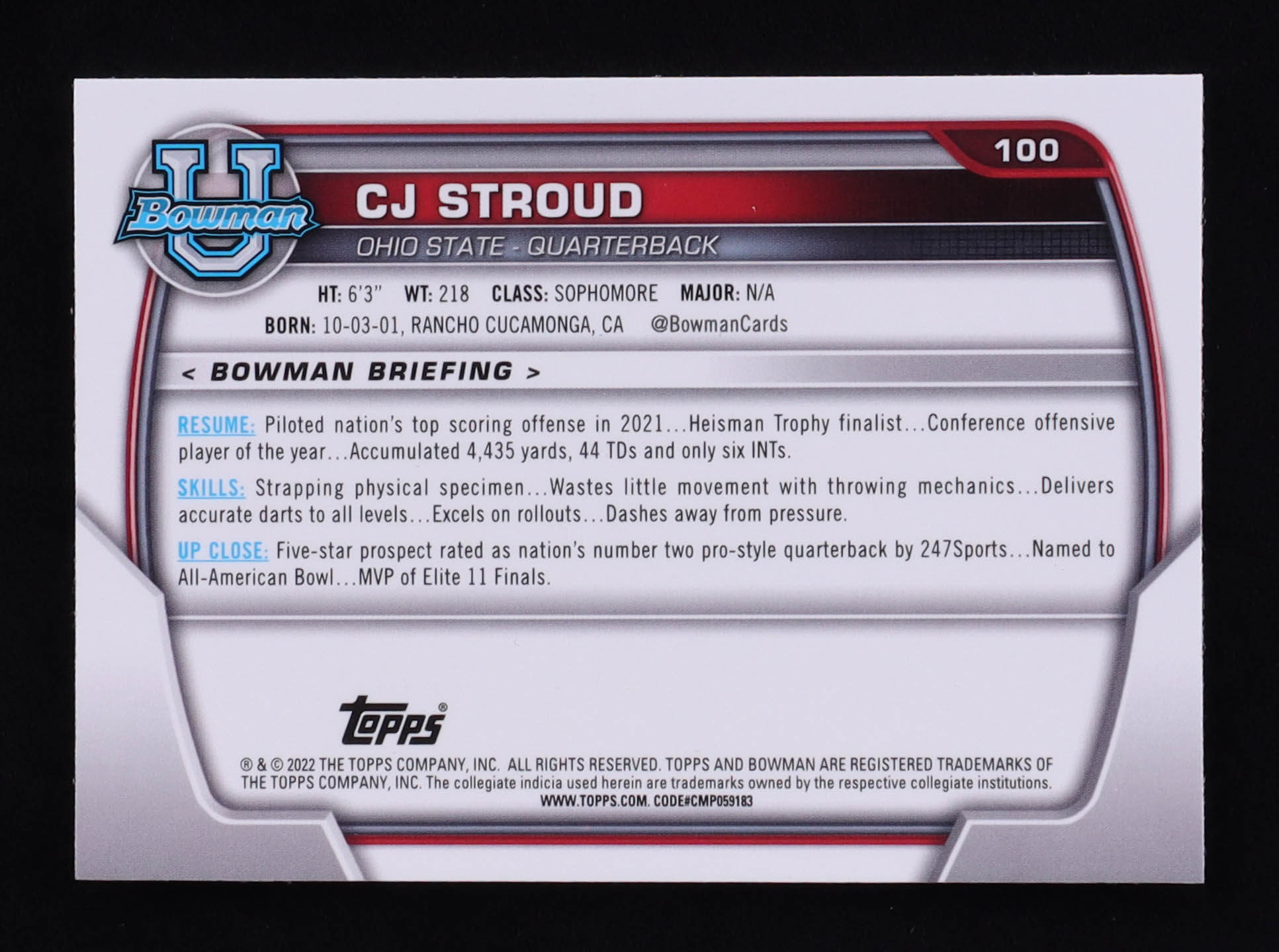 CJ Stroud 2022 Bowman Chrome University #100 RC