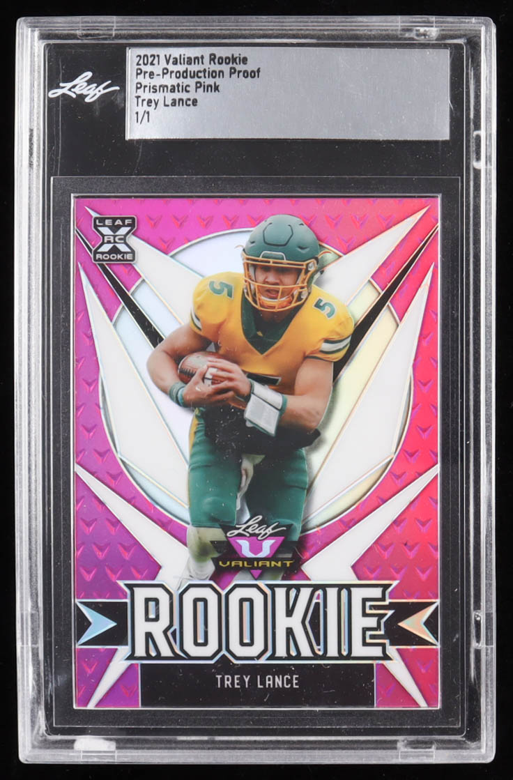 Trey Lance 2021 Valiant Rookie Pre-Production Proof Prismatic Pink RC #1/1 (Leaf)