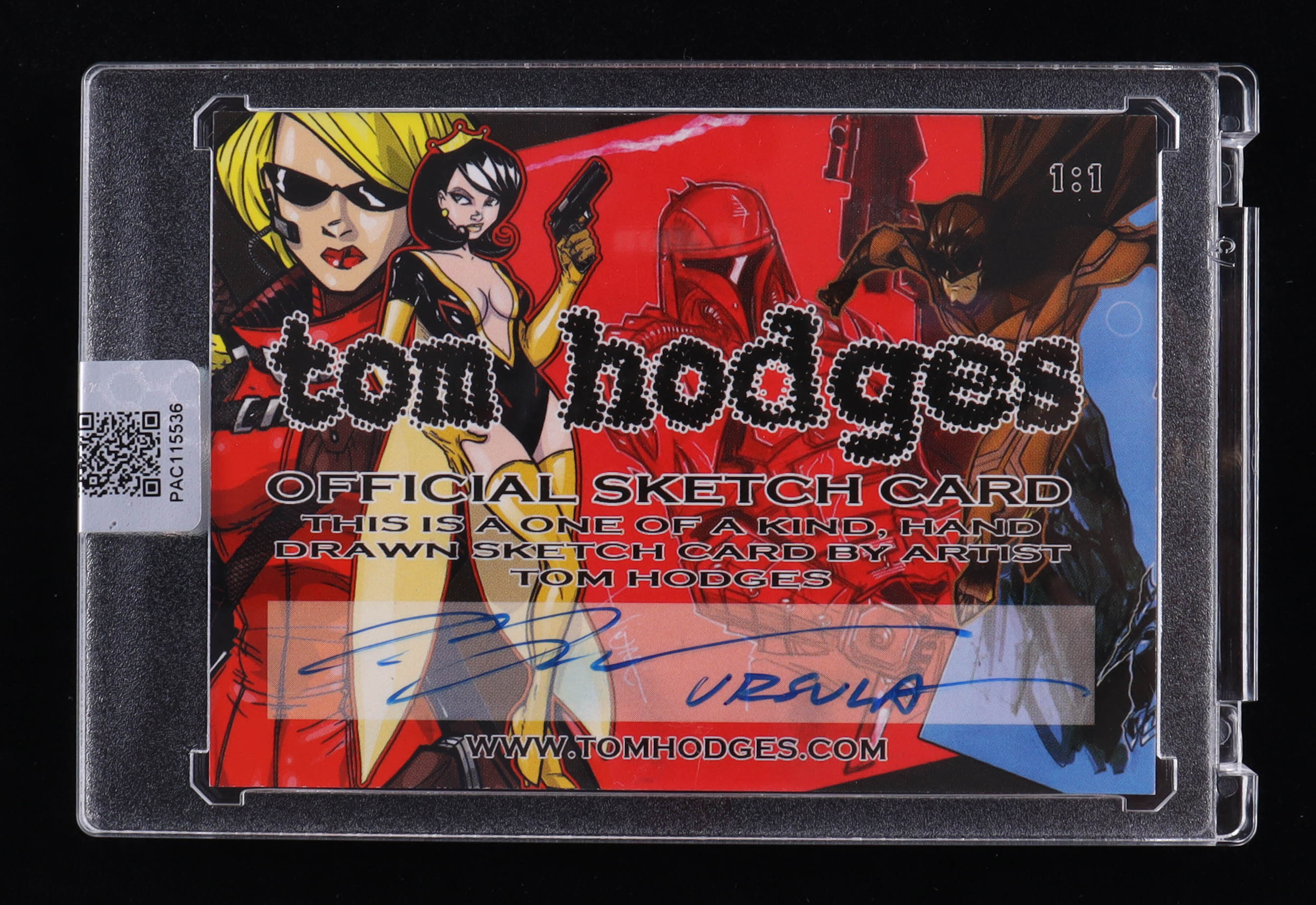 This original sketch card includes original art by renowned comic book artist, Tom Hodges. Also includes a character name inscription on the back by the artist.