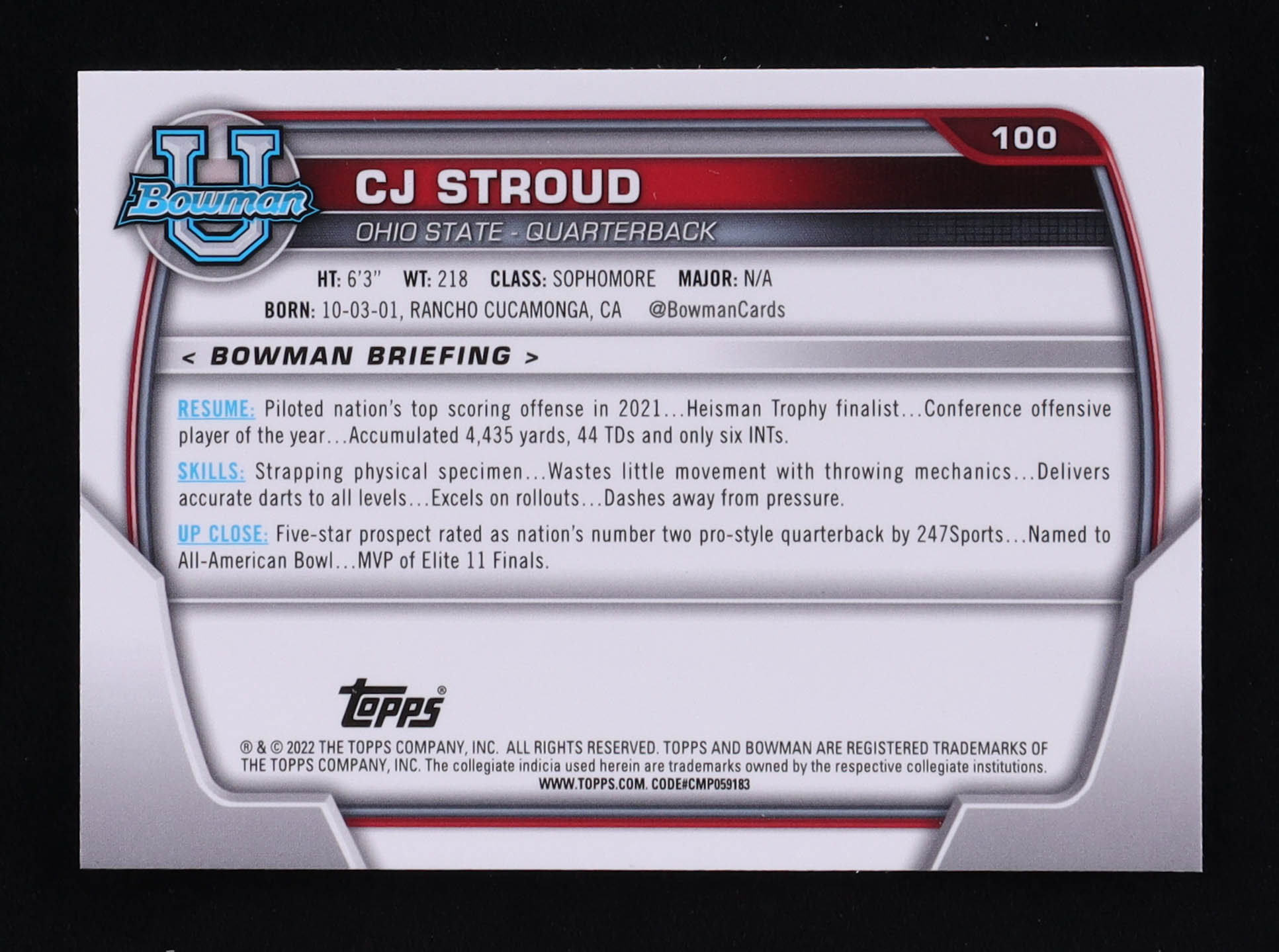 CJ Stroud 2022 Bowman Chrome University #100 RC