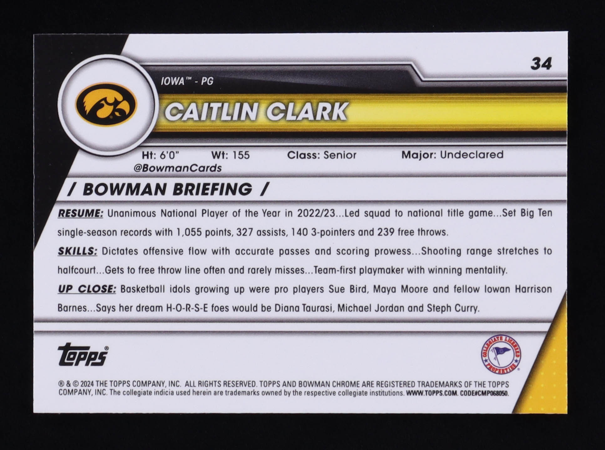 Caitlin Clark 2023-24 Bowman Chrome University #34 RC