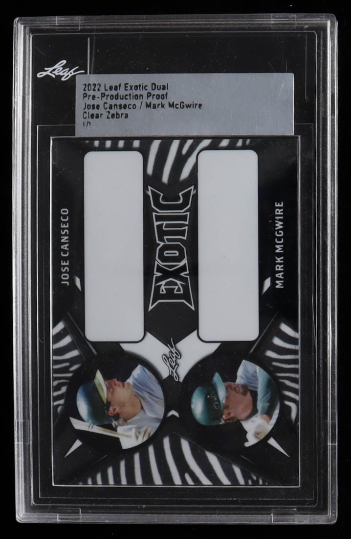 Jose Canseco / Mark McGwire 2022 Leaf Exotic Dual Pre-Production Proof Clear Zebra #1/1 (Leaf)