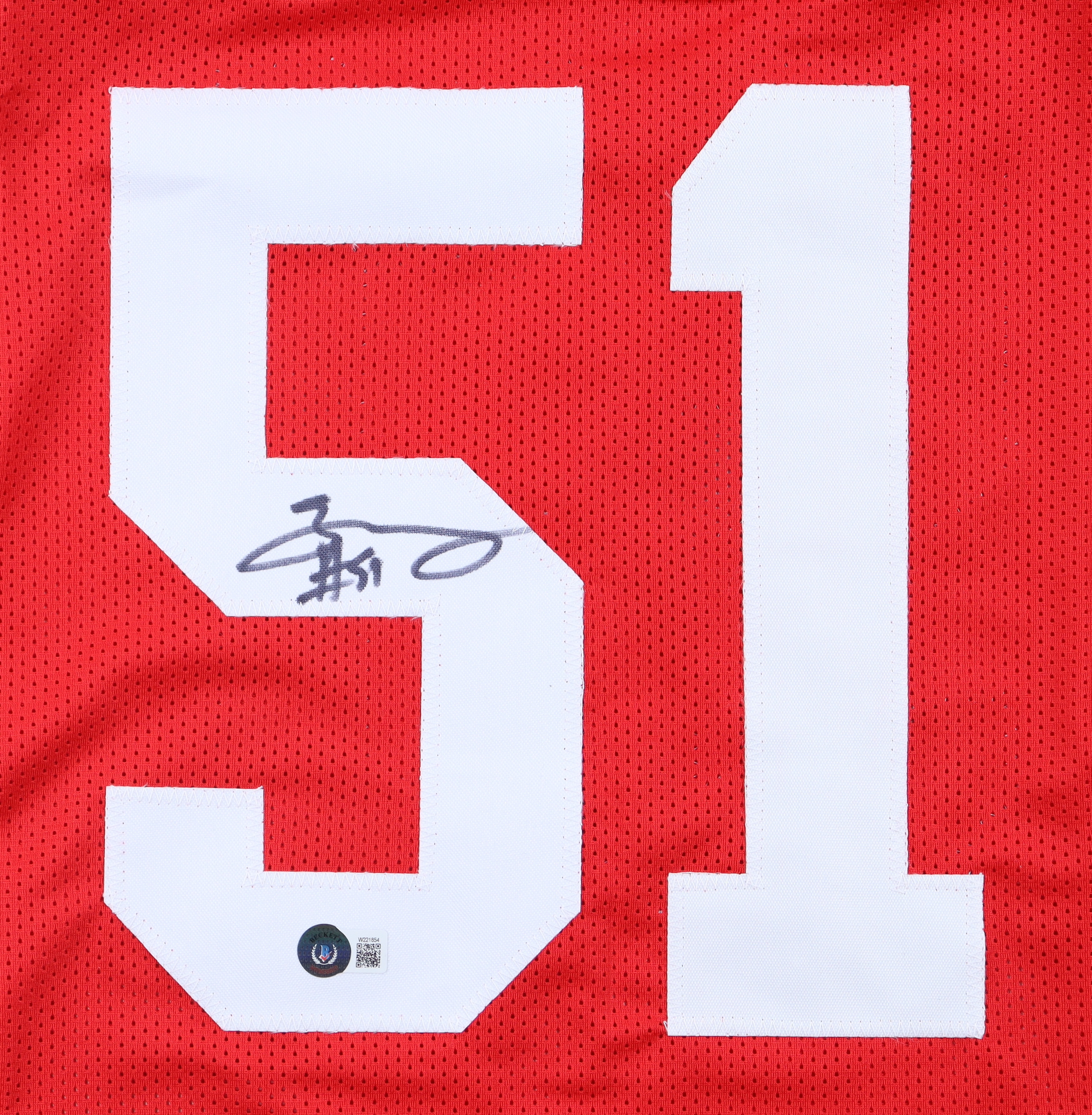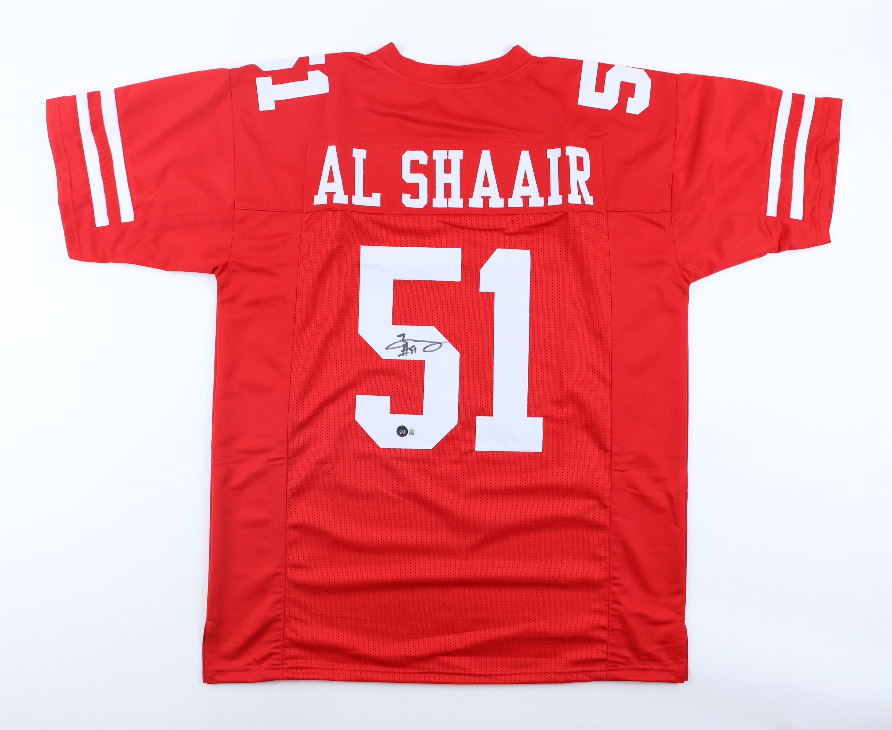 Custom jersey. Everything is sewn on, size XL. Hand-signed by Azeez Al-Shaair.