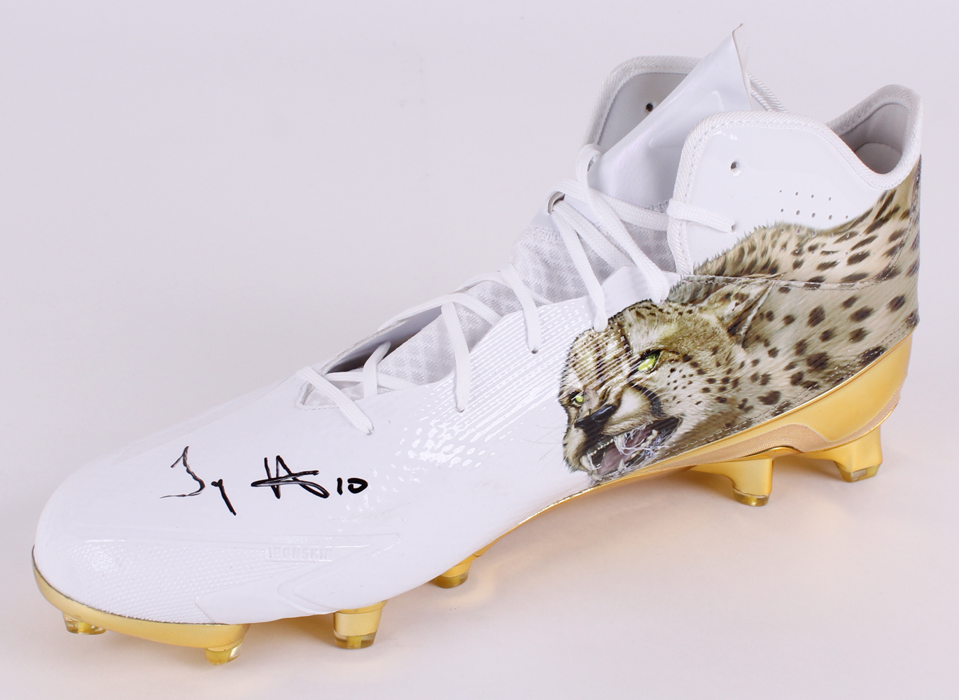 Adidas Adizero football cleat. Shoe size 16. Hand-signed in black felt-tip pen by Tyreek Hill (Chiefs). Please note, signature is imperfect, see photos for details.