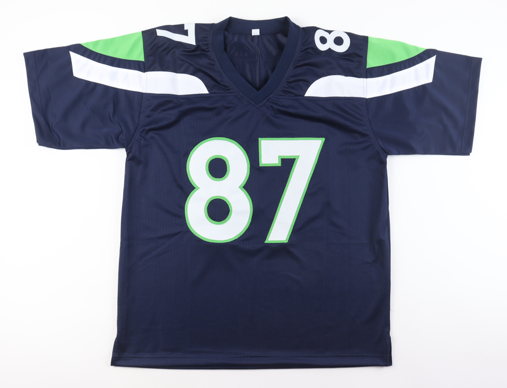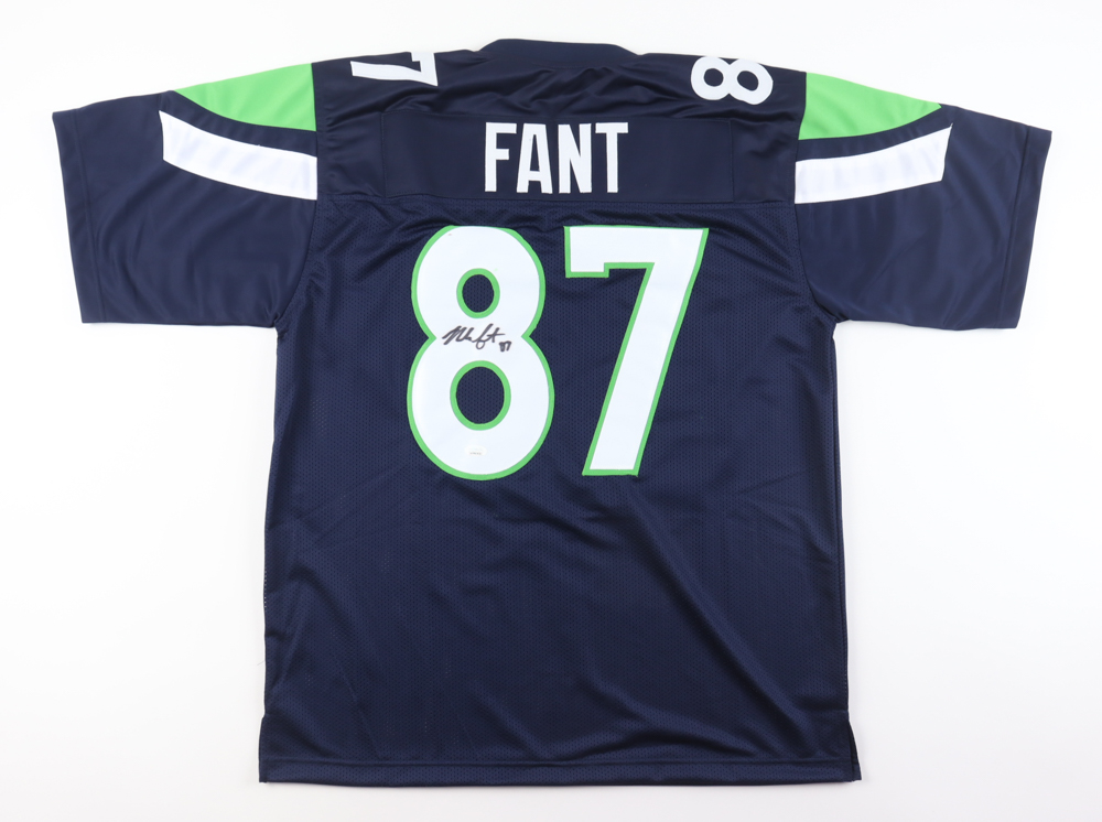 Custom jersey. Everything is sewn on, size XL. Hand-signed by Noah Fant.
