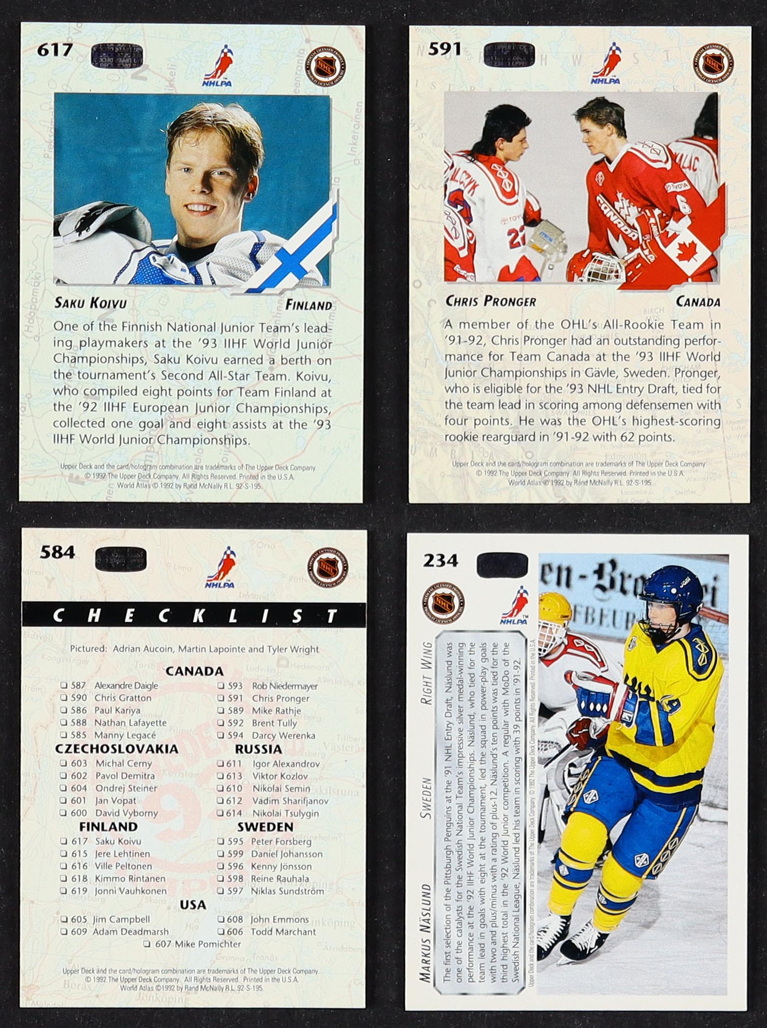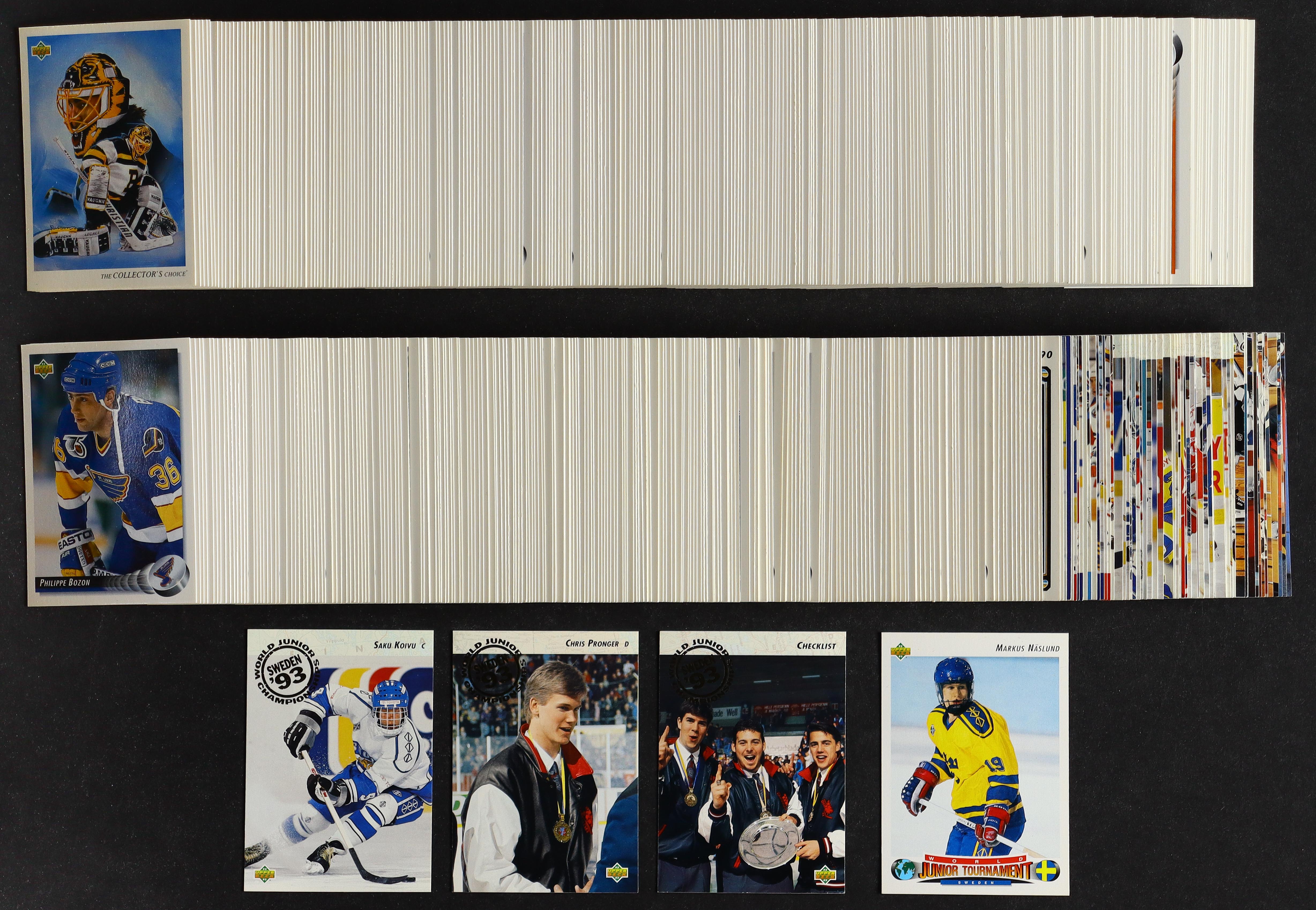 1992-93 Upper Deck Hockey Complete Set of (640) Cards With Markus Naslund RC #234, Saku Koivu RC #617, Chris Pronger RC #59, Checklist #584