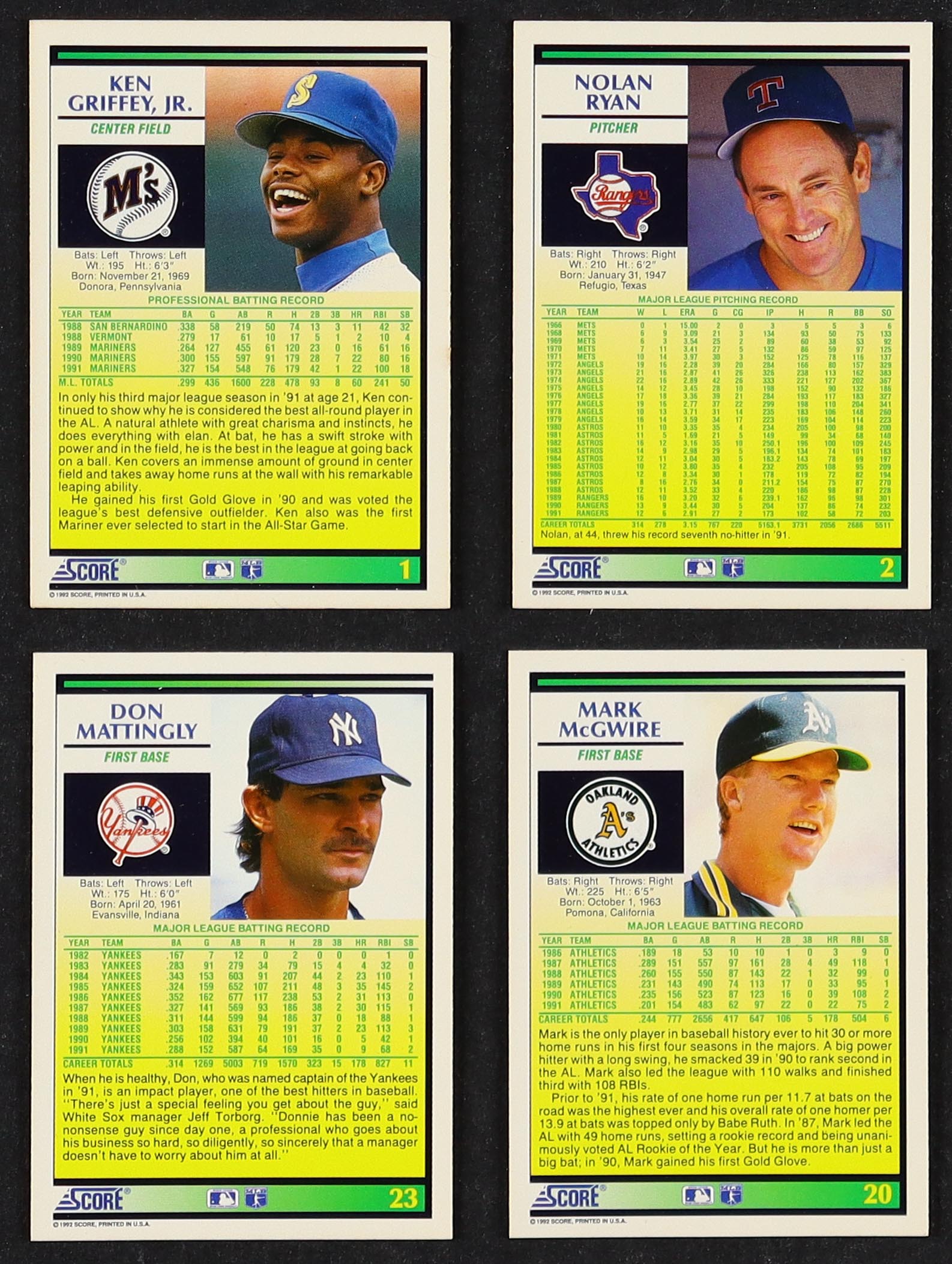 1992 Score Baseball Complete Series 1 Set of (442) Cards with Nolan Ryan #2, Ken Griffey Jr. #1, Don Mattingly #23, Mark McGwire #20