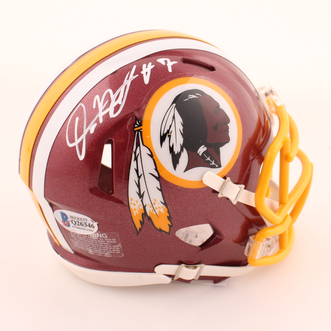 Riddell Washington Redskins speed mini helmet. Hand-signed by Dwayne Haskins (D. 2022).