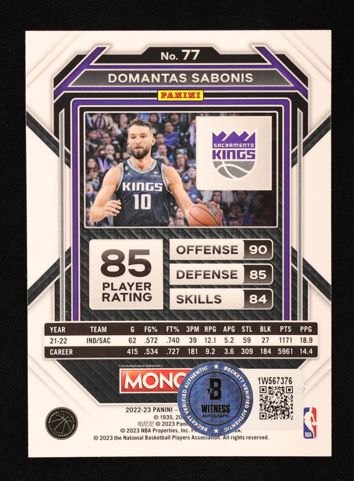 Domantas Sabonis Signed 2022-23 Panini Prizm Monopoly #77 (Beckett)