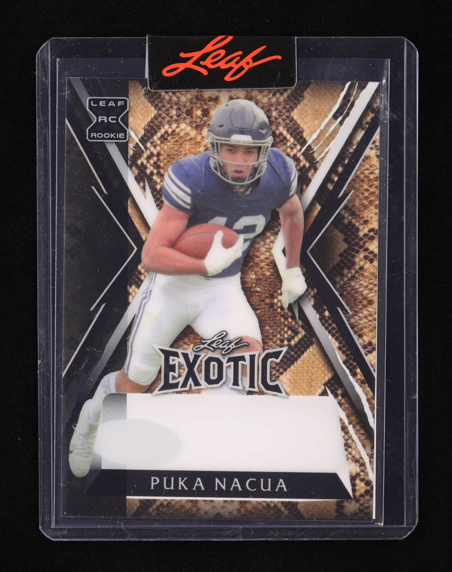 Puka Nacua 2023 Leaf Exotic Pre-Production Proof Clear Snakeskin RC #1/1