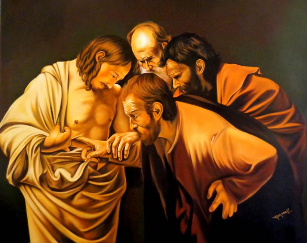 Hector Monroy Signed "The Incredulity of Saint Thomas" 33.5x41.5 Original Oil Painting on Canvas (PA)
